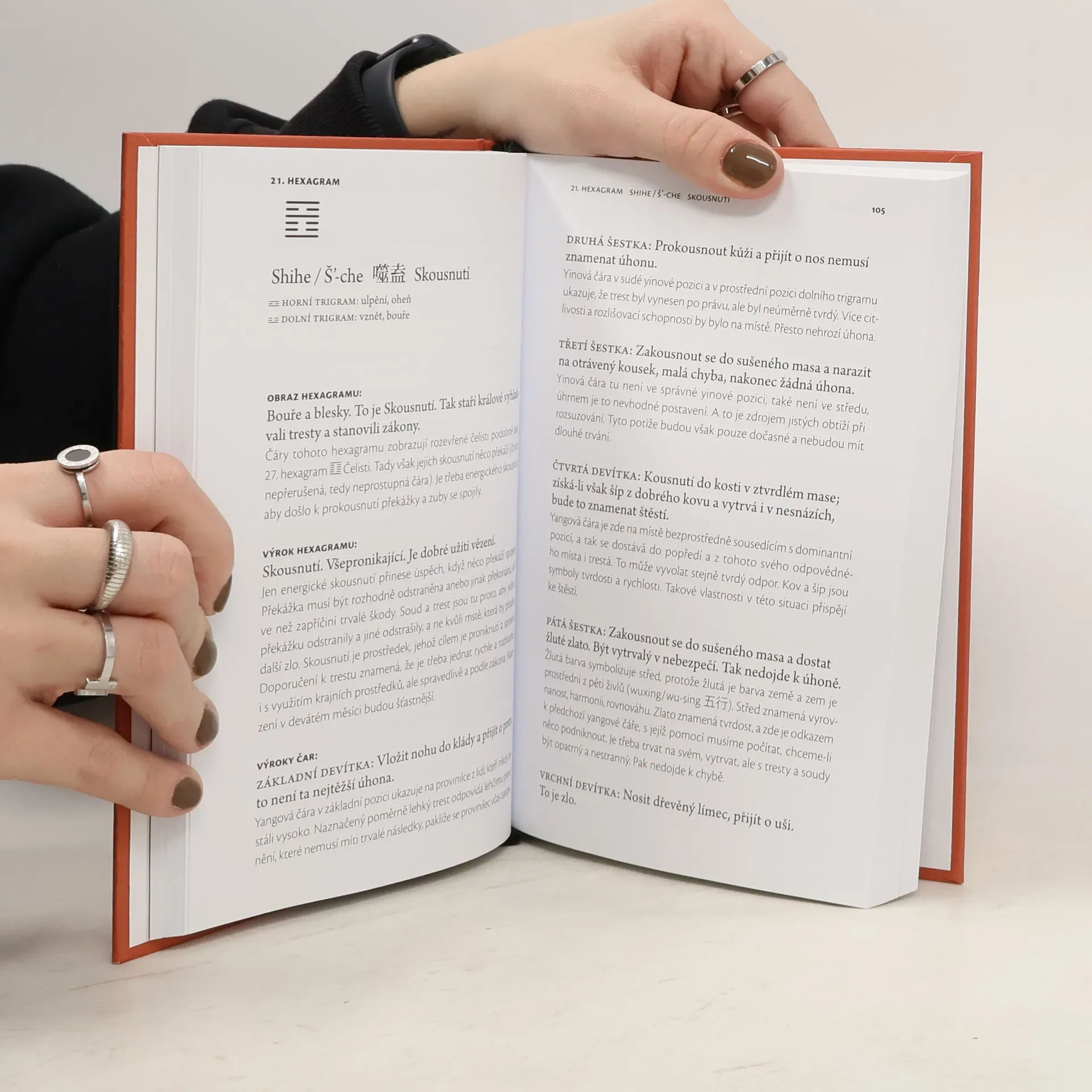 Jedna z nejstarších knih lidského rodu, která významně ovlivňovala vývoj čínské civilizace a filozofie. Její původ se váže k počátkům dynastie Sia v 18. století př. n. l. Český překlad Oldřicha Krále patří k nemnoha světovým překladům tohoto díla, které se snaží dostat k autentické podobě jeho promluv, obrazů a myšlenek. Překlad je navíc vybaven podrobnou studií a četnými komentáři. Z čínštiny přeložil, výkladem a komentáři opatřil Oldřich Král.