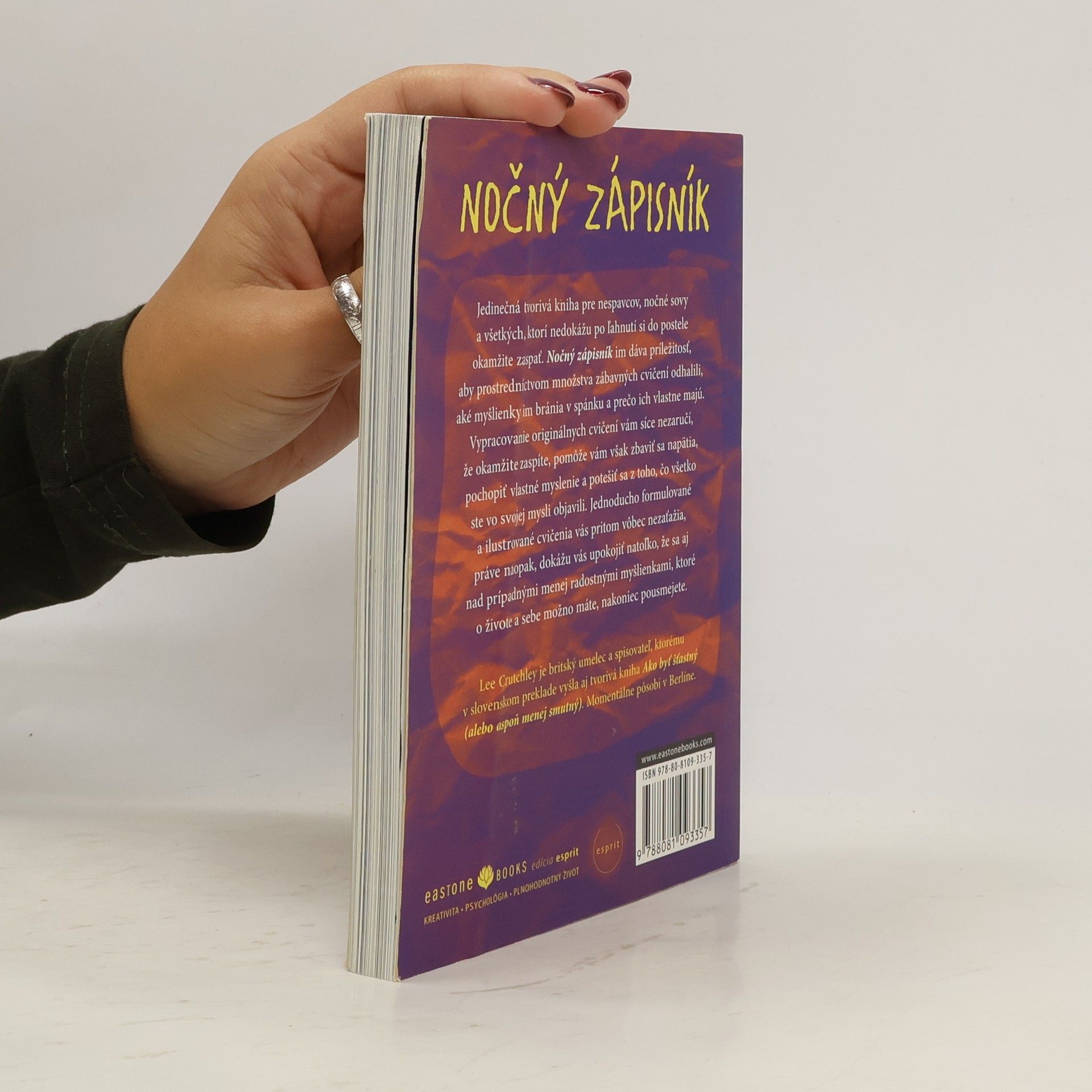 Jedinečná tvorivá kniha pre nespavcov, nočné sovy a všetkých, ktorí nedokážu po ľahnutí si do postele okamžite zaspať. Nočný zápisník im dáva príležitosť, aby prostredníctvom množstva zábavných cvičení odhalili, aké myšlienky im bránia v spánku a prečo ich vlastne majú. Vypracovanie originálnych cvičení vám síce nezaručí, že okamžite zaspíte, pomôže vám však zbaviť sa napätia, pochopiť vlastné myslenie a potešiť sa z toho, čo všetko ste vo svojej mysli objavili. Jednoducho formulované a ilustrované cvičenia vás pritom vôbec nezaťažia, práve naopak, dokážu vás upokojiť natoľko, že sa aj nad prípadnými menej radostnými myšlienkami, ktoré o živote a sebe možno máte, nakoniec pousmejete.
