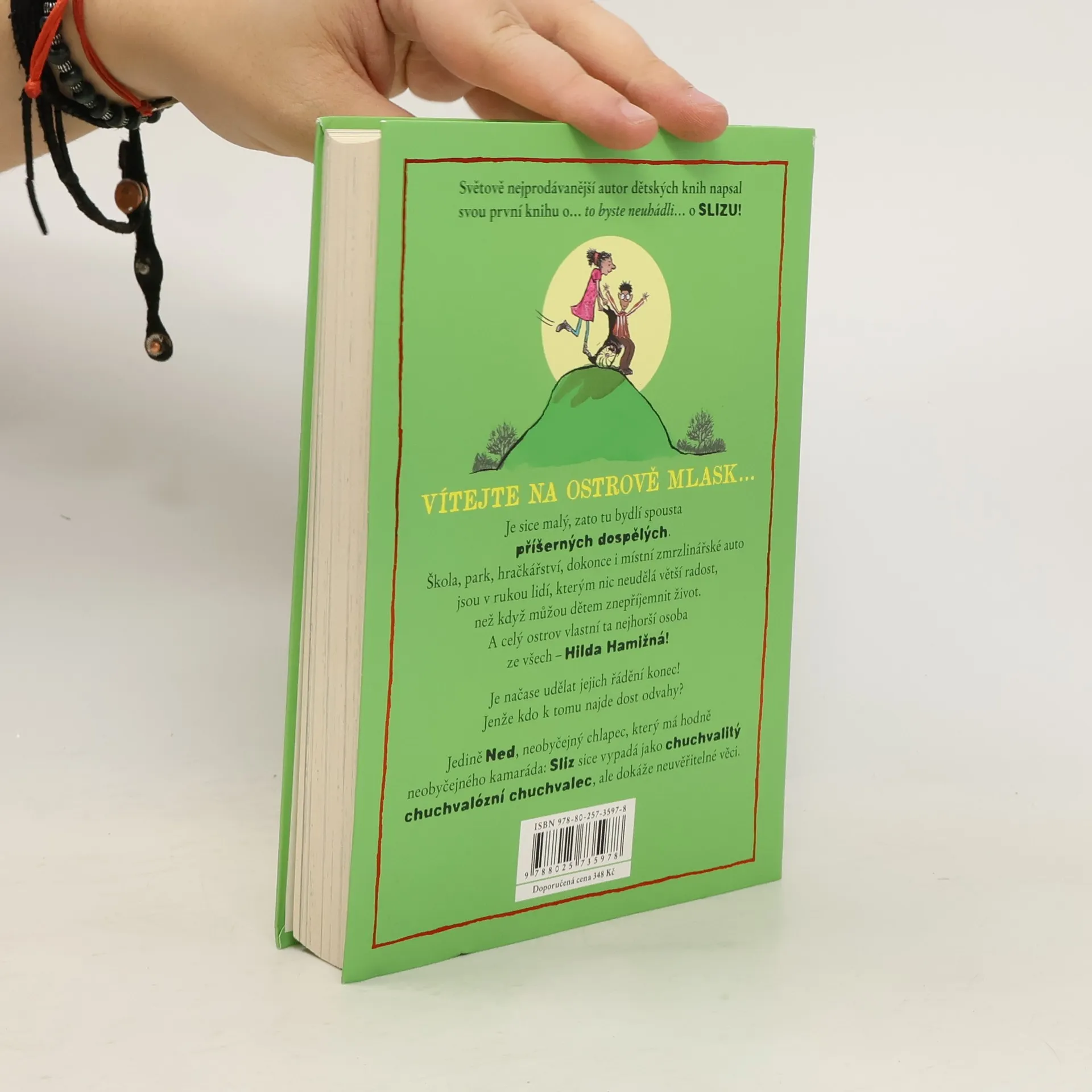 Vítejte na jednom zvláštním ostrově… Je malý, hezký, jen kdyby tu nebydlela ta spousta příšerných dospělých. Školu, park, ba i hračkářství mají na starost lidé, kterým nic neudělá větší radost, než když můžou nějakému dítěti znepříjemnit život. Dokonce i místní zmrzlinářské auto patří zlotřilému manželskému páru, který dětem zmrzlinu… jen si to představte… krade! A celý ostrov vlastní ta nejhorší osoba ze všech – teta Hilda Hamižná! Někdo tomu už musí udělat přítrž! Ale kdo najde dost odvahy? Jedině Ned – je sice na vozíčku, ale jinak vládne neobyčejnou superschopností. SLIZOMOCÍ! David Walliams je úkaz: děti jeho knihy milují, z každé se stane okamžitě bestseller.