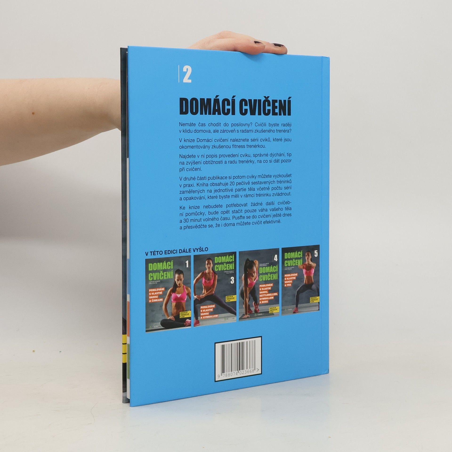 Nemáte čas chodit do posilovny? Cvičili byste raději v klidu domova, ale zároveň s radami zkušeného trenéra? V knize Domácí cvičení naleznete sérii cviků, které jsou okomentovány zkušenou fitness trenérkou. Najdete v ní popis provedení cviku, správné dýchání, tip na zvýšení obtížnosti a radu trenérky, na co si dát pozor při cvičení. V druhé části publikace si potom cviky můžete vyzkoušet v praxi. Kniha obsahuje 20 pečlivě sestavených tréninků zaměřených na jednotlivé partie těla včetně počtu sérií a opakování, které byste měli v rámci tréninku zvládnout. Ke knize nebudete potřebovat žádné další cvičební pomůcky, bude opět stačit pouze váha vašeho těla a 30 minut volného času. Pusťte se do cvičení ještě dnes a přesvědčte se, že i doma můžete cvičit efektivně.