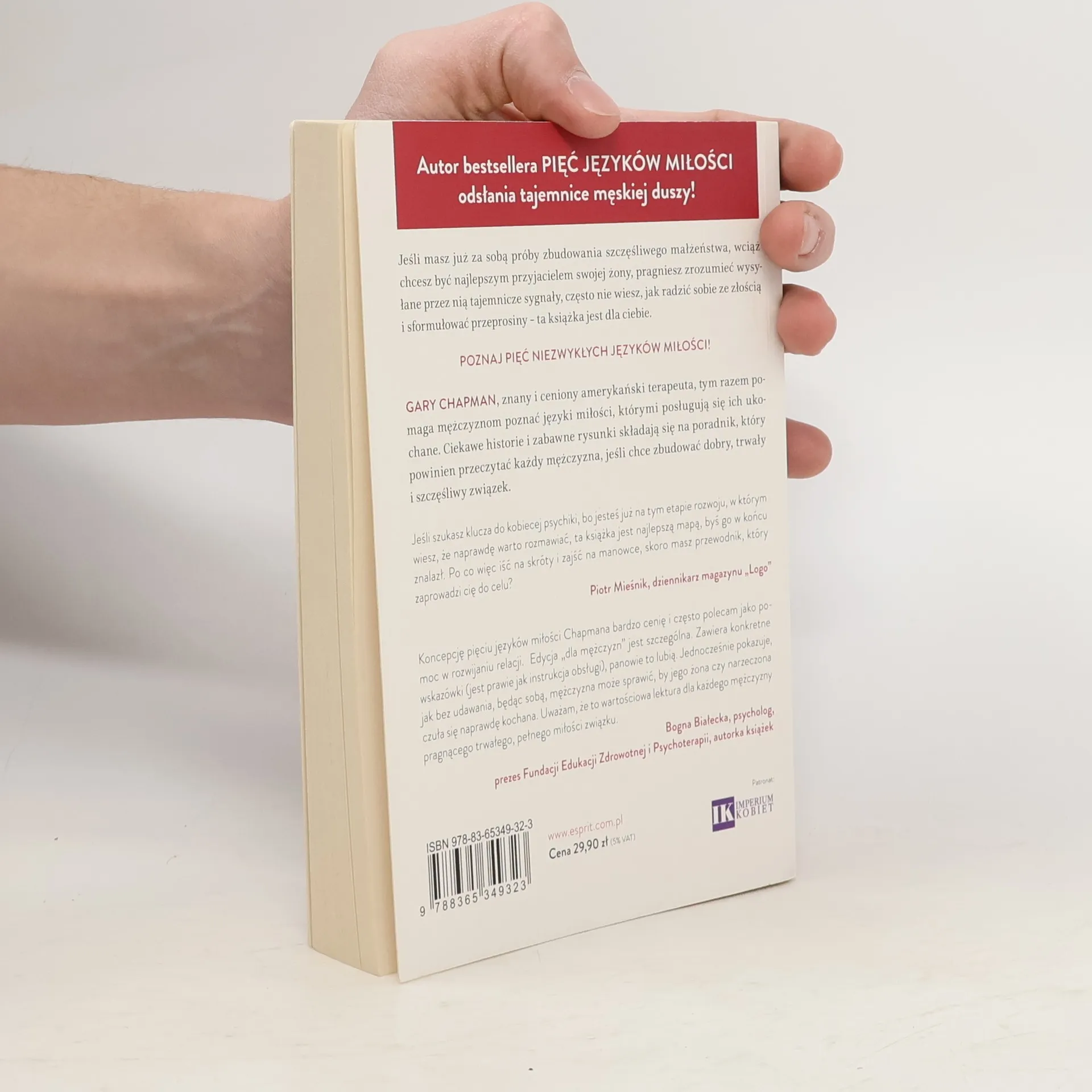 Autor bestselleru 5 język�w miłości odsłania tajemnice męskiej duszy!Jeśli masz już za sobą pr�by zbudowania szczęśliwego małżeństwa, wciąż chcesz być najlepszym przyjacielem swojej żony, pragniesz zrozumieć wysyłane przez nią tajemnicze sygnały, często nie wiesz, jak radzić sobie ze złością i jak sformułować przeprosiny ? ta książka jest dla ciebie.Poznaj 5 pięć niezwykłych język�w miłości!Gary Chapman, znany i ceniony amerykański terapeuta, tym razem pomaga mężczyznom poznać języki miłości, kt�rymi posługują się ich ukochane. Ciekawe historie i zabawne rysunki składają się na poradnik, kt�ry powinien przeczytać każdy mężczyzna, jeśli chce zbudować dobry, trwały i szczęśliwy związek.Jeśli szukasz klucza do kobiecej psychiki, bo jesteś już na tym etapie rozwoju, w kt�rym wiesz, że naprawdę warto rozmawiać, ta książka jest najlepszą mapą, byś go w końcu znalazł. Po co więc iść na skr�ty i zajść na manowce, skoro masz przewodnik, kt�ry zaprowadzi cię do celu?Piotr Miesnik, dziennikarz magazynu�Koncepcję pięciu język�w miłości Chapmana bardzo cenię i często polecam jako pomoc w rozwijaniu relacji. Edycja dla mężczyzn jest szczeg�lna. Zawiera konkretne wskaz�wki (jest prawie jak instrukcja obsługi), panowie to lubią. Jednocześnie pokazuje, jak bez udawania, będąc sobą, mężczyzna może sprawić, by jego żona czy narzeczona czuła się naprawdę kochana. Uważam, że to wartościowa lektura dla każdego mężczyzny pragnącego trwałego, pełnego miłości związku.
