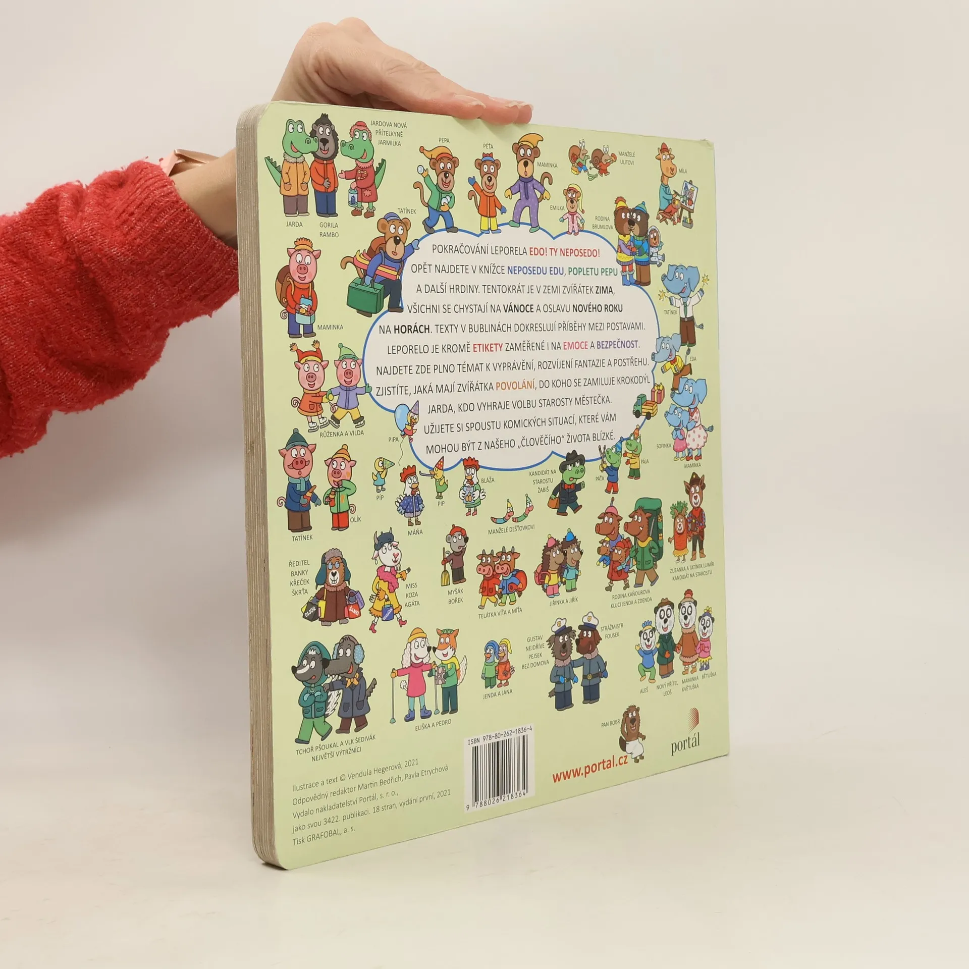 Volné pokračování úspěšného leporela Edo! Ty neposedo! rozvíjí příběhy Edova kamaráda, opičáka Pepy. Tentokrát je v zemi zvířátek zima a všichni se chystají na Vánoce a také oslavu nového roku. Texty v bublinách dokreslují malé příběhy mezi hrdiny knížky. Mimo etikety se leporelo zaměřuje i na emoce. Má Pepa strach? Je Eda veselý, stará myška osamělá? Poznáte spoustu povolání – výpravčí, prodavač, policista, úřednice… Můžete hledat jednotlivá zvířátka a sledovat jejich příběh. Hlavně si ale užijete spoustu komických situacích, které vám budou i z našeho „člověčího“ života blízké.
