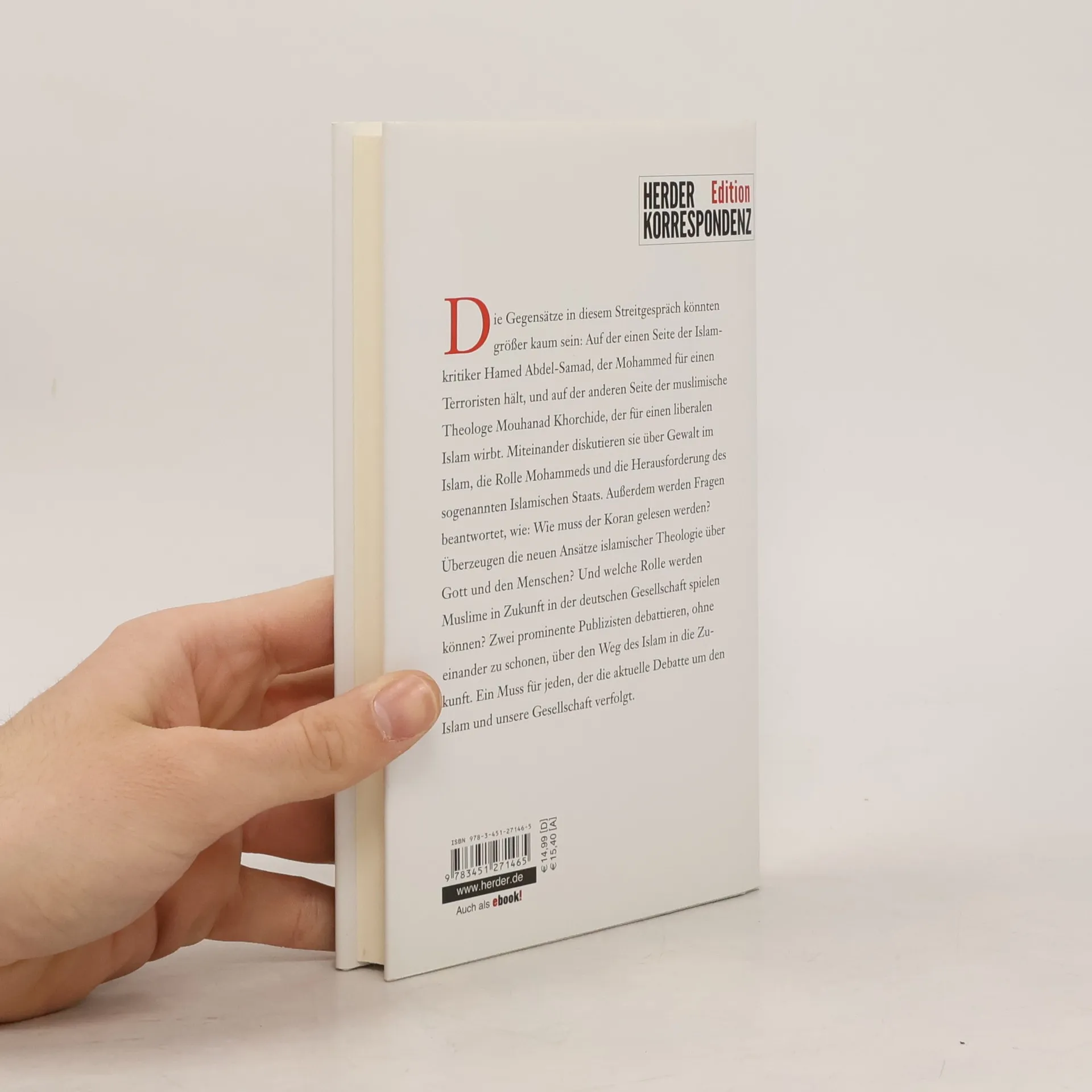 Die Gegensätze könnten größer kaum Auf der einen Seite der Islamkritiker Hamed Abdel-Samad, der Mohammed für einen Terroristen hält, und auf der anderen Seite der muslimische Theologe Mouhanad Khorchide, der für einen liberalen Islam wirbt. In dem vorliegenden Buch ringen die prominentesten Akteure der aktuellen Debatte miteinander. Persönlich schätzen sich sich, doch inhaltlich könnte der Konflikt größer nicht sein. Themen dieses Streitgesprächs sind Gewalt und Friedfertigkeit im Islam, die Rolle Mohammeds und die Herausforderung des sogenannten Islamischen Staats. Außerdem werden Fragen beantwortet, Wie muss der Koran gelesen werden? Überzeugen die neuen Ansätze islamischer Theologie über Gott und den Menschen? Und welche Rolle werden Muslime in Zukunft in der deutschen Gesellschaft spielen können? Zwei prominente Publizisten diskutieren, ohne einander zu schonen, über den Weg des Islam in die Zukunft. Ein Muss für jeden, der die aktuelle Debatte um den Islam und unsere Gesellschaft verfolgt.