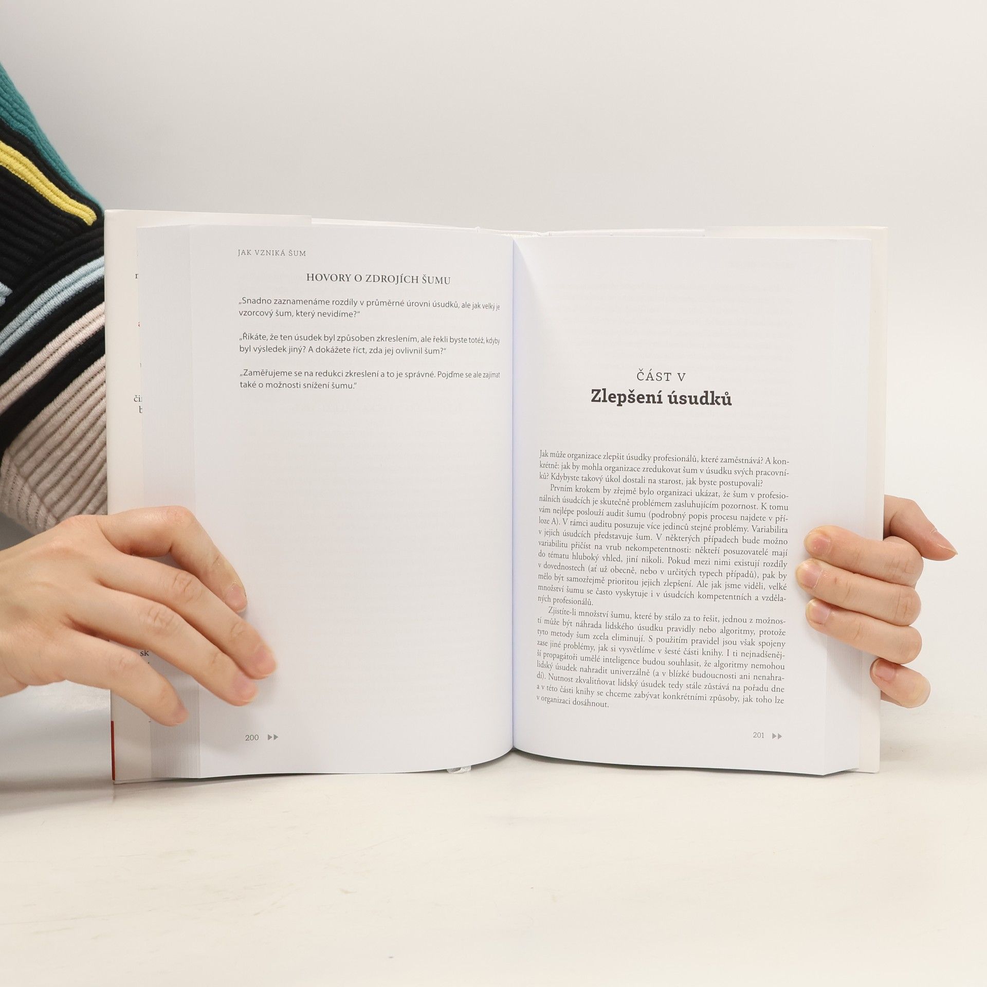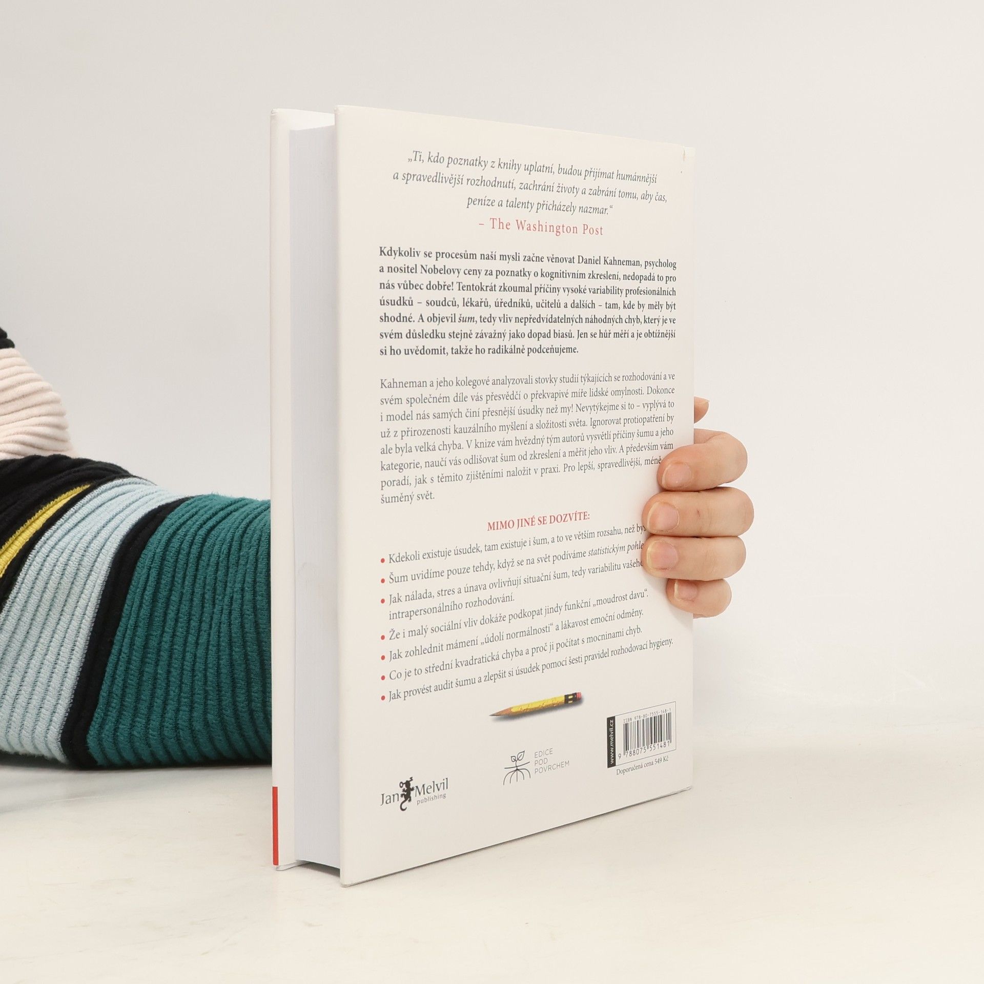 Kahneman s kolegy analyzoval stovky studií týkajících se rozhodování a ve svém společném díle vás přesvědčí, že i když máme tendenci své mentální schopnosti přeceňovat, jsme jako lidé velmi omylní. I model nás samých činí přesnější úsudky než my! Což není naší chybou, spíše přirozeností kauzálního myšlení a složitostí světa, chybou by však bylo ignorovat protiopatření. V knize vám hvězdný tým autorů vysvětlí příčiny vzniku šumu, jeho kategorie, odliší jej od zkreslení, naučí měřit jeho vliv, ale především ukáže, jak s těmito zjištěními naložit v praxi. Tedy jaké kroky po auditu šumu v rámci šesti pravidel rozhodovací hygieny podniknout. Pro lepší, spravedlivější, méně zašuměný svět.