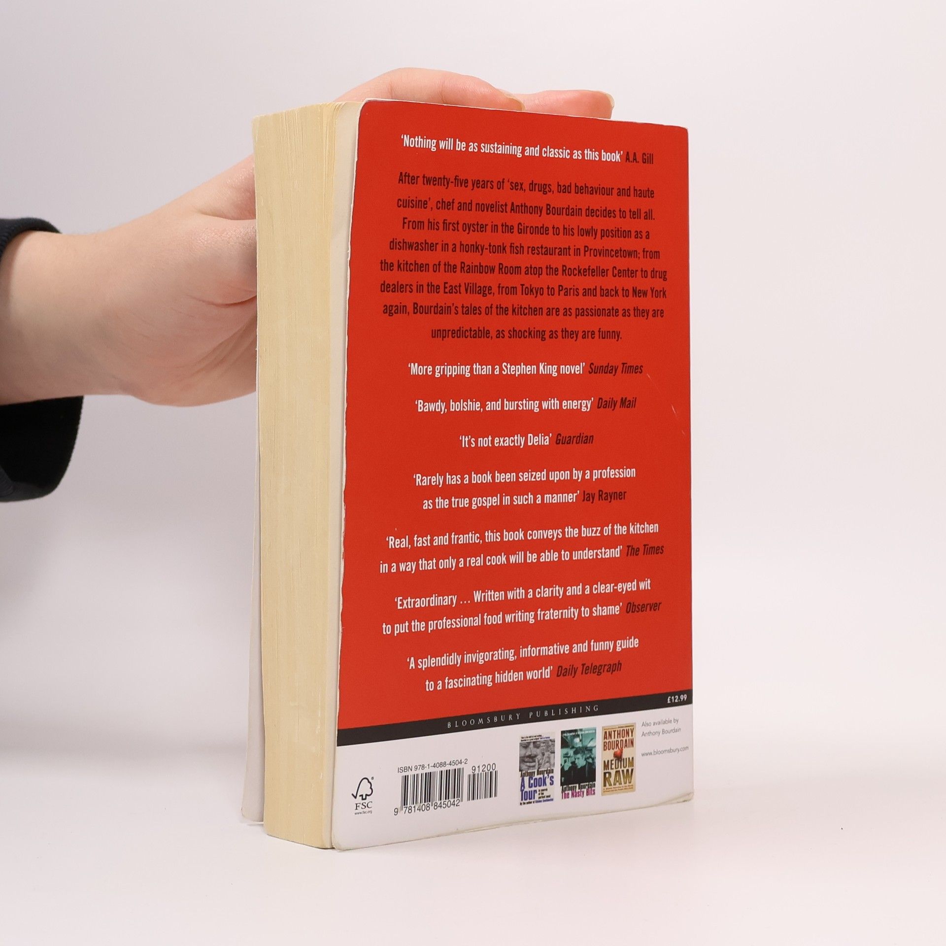 After twenty-five years of 'sex, drugs, bad behaviour and haute cuisine', chef and novelist Anthony Bourdain has decided to tell all. From his first oyster in the Gironde to his lowly position as a dishwasher in a honky-tonk fish restaurant in Provincetown; from the kitchen of the Rainbow Room atop the Rockefeller Center to drug dealers in the East Village, from Tokyo to Paris and back to New York again, Bourdain's tales of the kitchen are as passionate as they are unpredictable, as shocking as they are funny.
