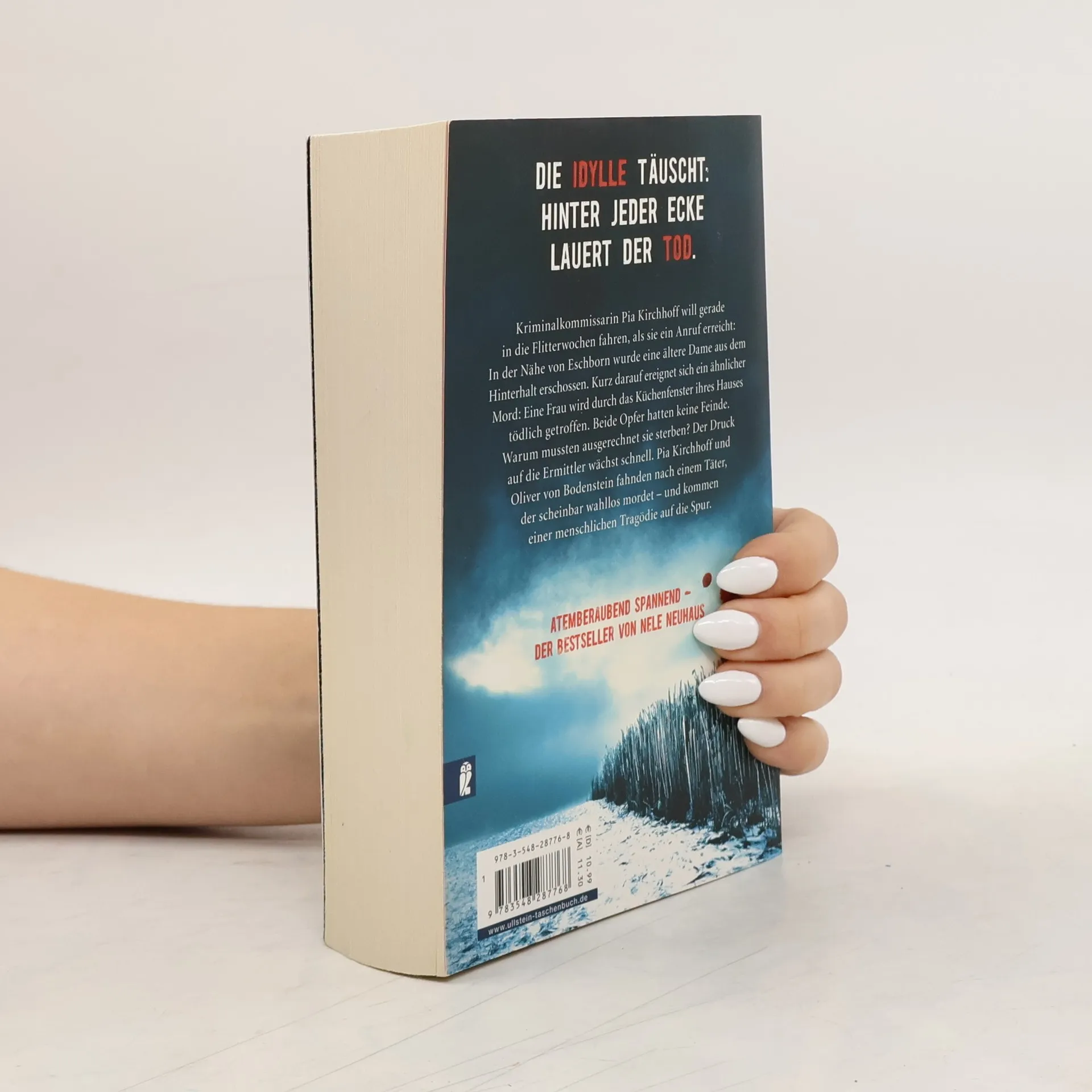 Die Idylle täuscht: Hinter jeder Ecke lauert der Tod. Kriminalkommissarin Pia Kirchhoff will gerade in die Flitterwochen fahren, als sie ein Anruf erreicht: In der Nähe von Eschborn wurde eine ältere Dame aus dem Hinterhalt erschossen. Kurz darauf ereignet sich ein ähnlicher Mord: Eine Frau wird durch das Küchenfenster ihres Hauses tödlich getroffen. Beide Opfer hatten keine Feinde. Warum mussten ausgerechnet sie sterben? Der Druck auf die Ermittler wächst schnell. Pia Kirchhoff und Oliver von Bodenstein fahnden nach einem Täter, der scheinbar wahllos mordet – und kommen einer menschlichen Tragödie auf die Spur. Atemberaubend spannend – der neue Bestseller von Nele Neuhaus! Entdecken Sie auch SOMMER DER WAHRHEIT, einen fesselnden Roman, den Nele Neuhaus unter dem Namen Nele Löwenberg geschrieben hat!