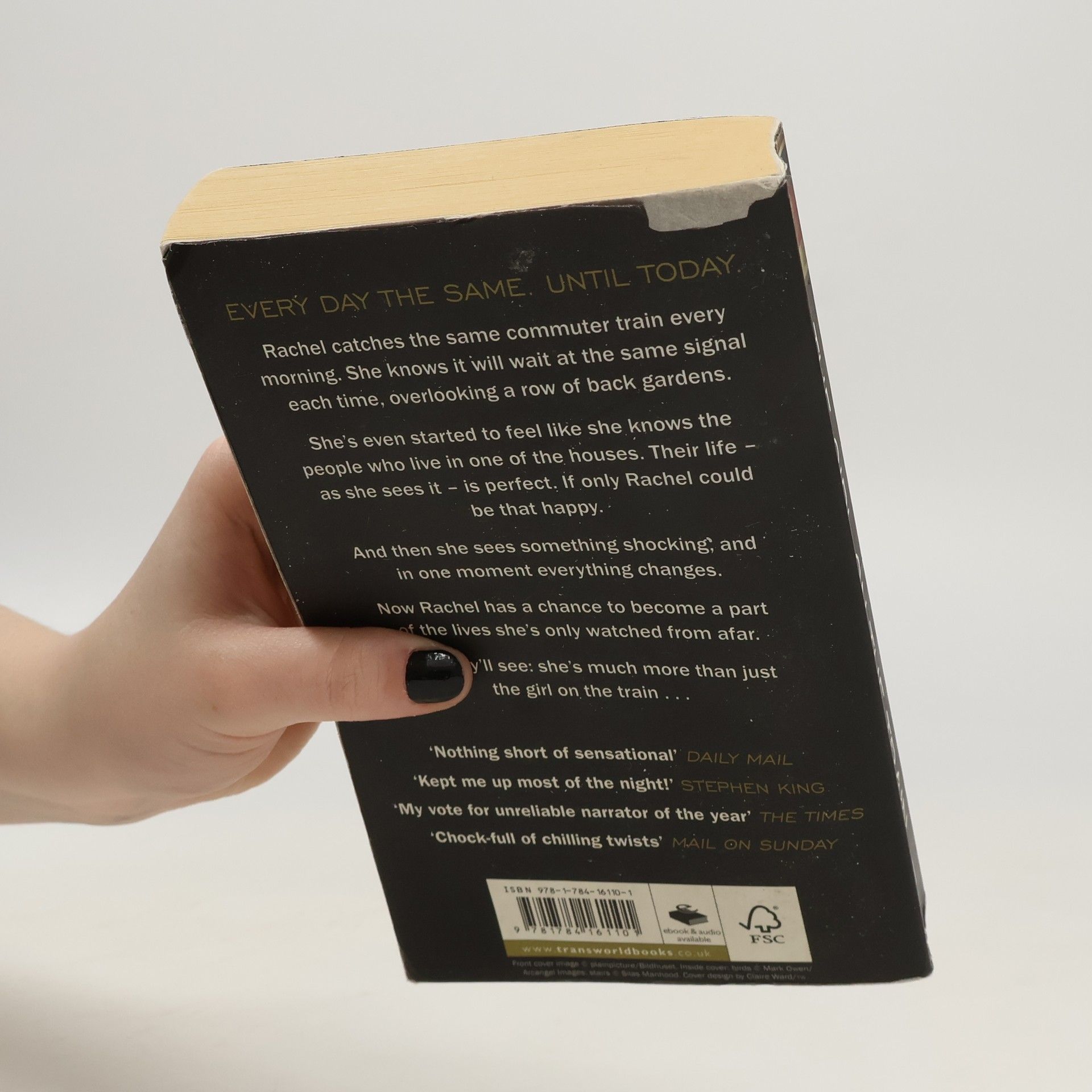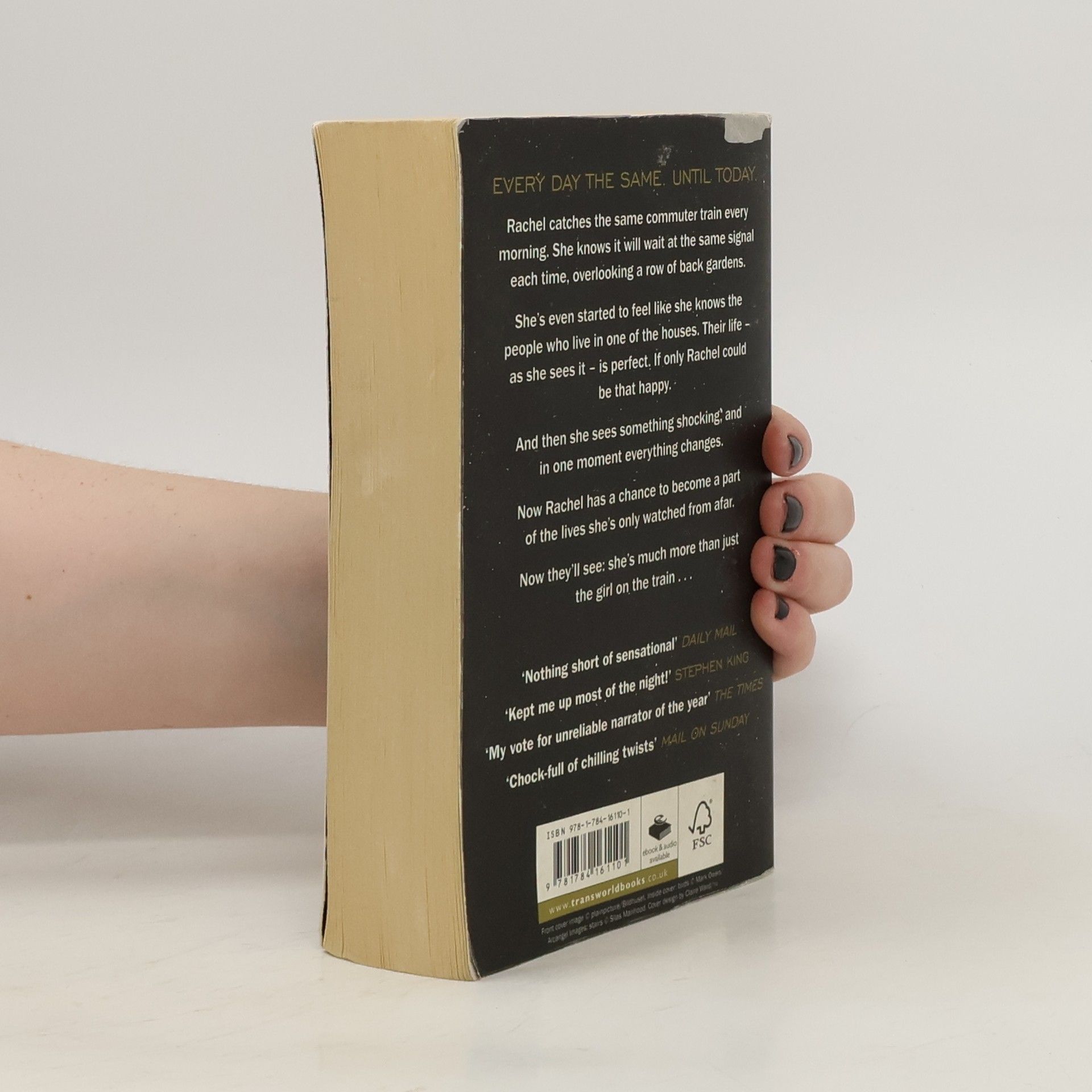 THE RUNAWAY SUNDAY TIMES NO.1 BESTSELLER AND THRILLER OF THE YEAR, NOW A MAJOR FILM STARRING EMILY BLUNT 'Really great suspense novel. Kept me up most of the night. The alcoholic narrator is dead perfect' STEPHEN KING Rachel catches the same commuter train every morning. She knows it will wait at the same signal each time, overlooking a row of back gardens. She's even started to feel like she knows the people who live in one of the houses. 'Jess and Jason', she calls them. Their life - as she sees it - is perfect. If only Rachel could be that happy. And then she sees something shocking. It's only a minute until the train moves on, but it's enough. Now everything's changed. Now Rachel has a chance to become a part of the lives she's only watched from afar. Now they'll see; she's much more than just the girl on the train...