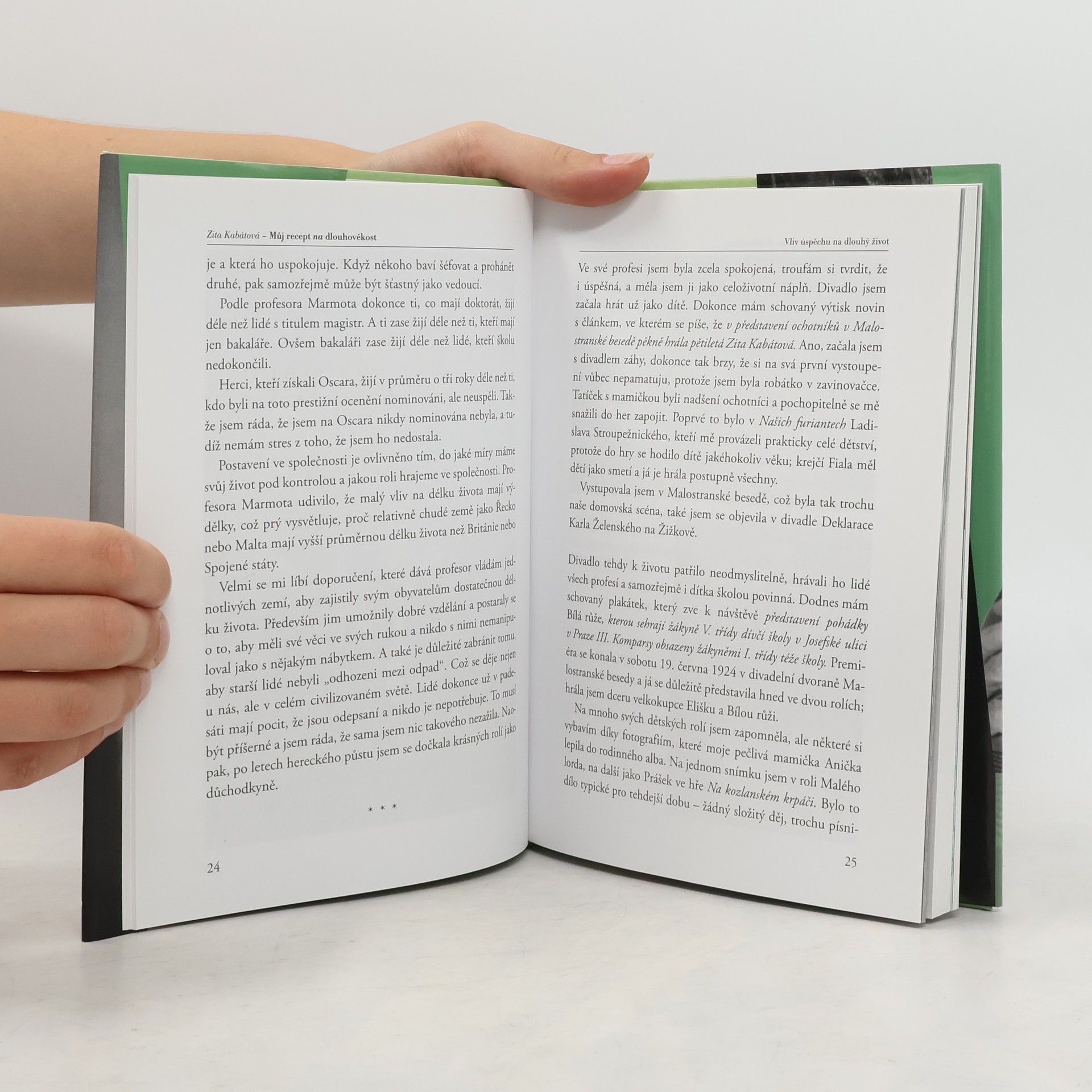 Narodila se rok před první světovou válkou a pět let před vznikem Československé republiky, zažila tedy takřka celé dvacáté století i s jeho neuvěřitelnými proměnami. Už oslavila pětadevadesáté narozeniny, nicméně neustále se na něco těší a kouká se víc dopředu než dozadu, bez problémů používá mobilní telefon, poradí si s digitální fotografií, denně luští křížovky, aby trénovala mozek, sleduje, co se děje doma i ve světě a potrpí si na drobné radosti ženského života, jako je dobrý parfém nebo kvalitní lak na nehty. A tak si člověk řekne - jak je možné, že existují lidé, jichž si zub času nevšímá, že jim nechává dychtivé oči, vnímavou duši a doufající srdce? Jak je možné, že existují lidé, kteří i s více jak devíti křížky čtou bez brýlí, píší knihy, dávají interwiev a dovedou přecházet z jednoho jazyka do druhého? Mají snad nějaký recept na dlouhověkost? Právě na tyto otázky dává odpovědi nejnovější kniha nejstarší české herečky Zity Kabátové. On ten recept totiž opravdu existuje a je fajn, že nám ho má kdo prozradit.