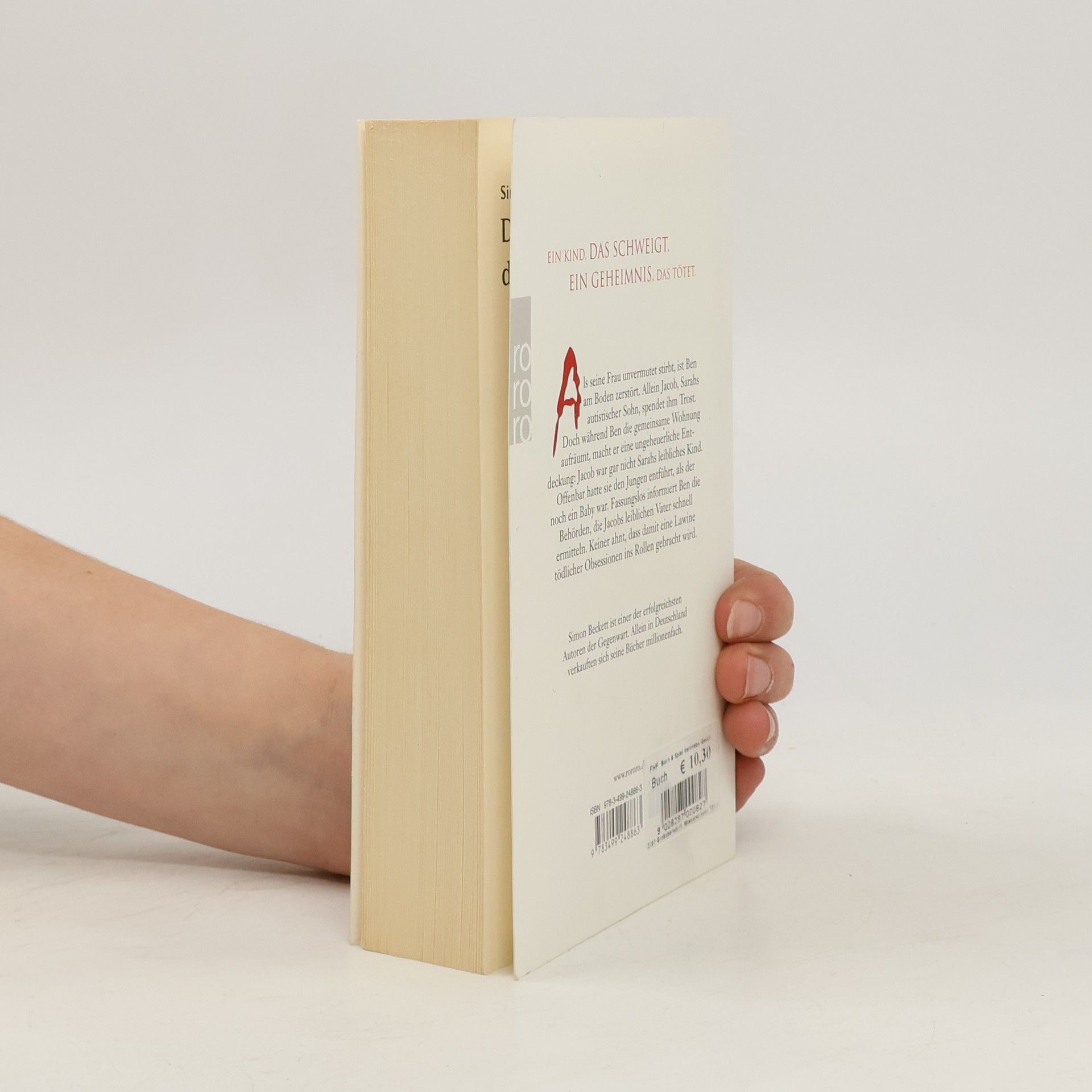 Ein Kind, das schweigt. Ein Geheimnis, das tötet.Als seine Frau unvermutet stirbt, ist Ben am Boden zerstört. Allein Jacob, Sarahs autistischer Sohn, spendet ihm Trost. Doch während Ben die gemeinsame Wohnung aufräumt, macht er eine ungeheuerliche Entdeckung: Jacob war gar nicht Sarahs leibliches Kind. Offenbar hatte sie den Jungen entführt, als der noch ein Baby war. Fassungslos engagiert Ben einen Privatdetektiv, der Jacobs leiblichen Vater schnell ermittelt. Keiner ahnt, dass damit eine Lawine tödlicher Obsessionen ins Rollen gebracht wird. Simon Beckett ist einer der erfolgreichsten Autoren der Gegenwart. Allein in Deutschland verkauften sich seine Bücher millionenfach.