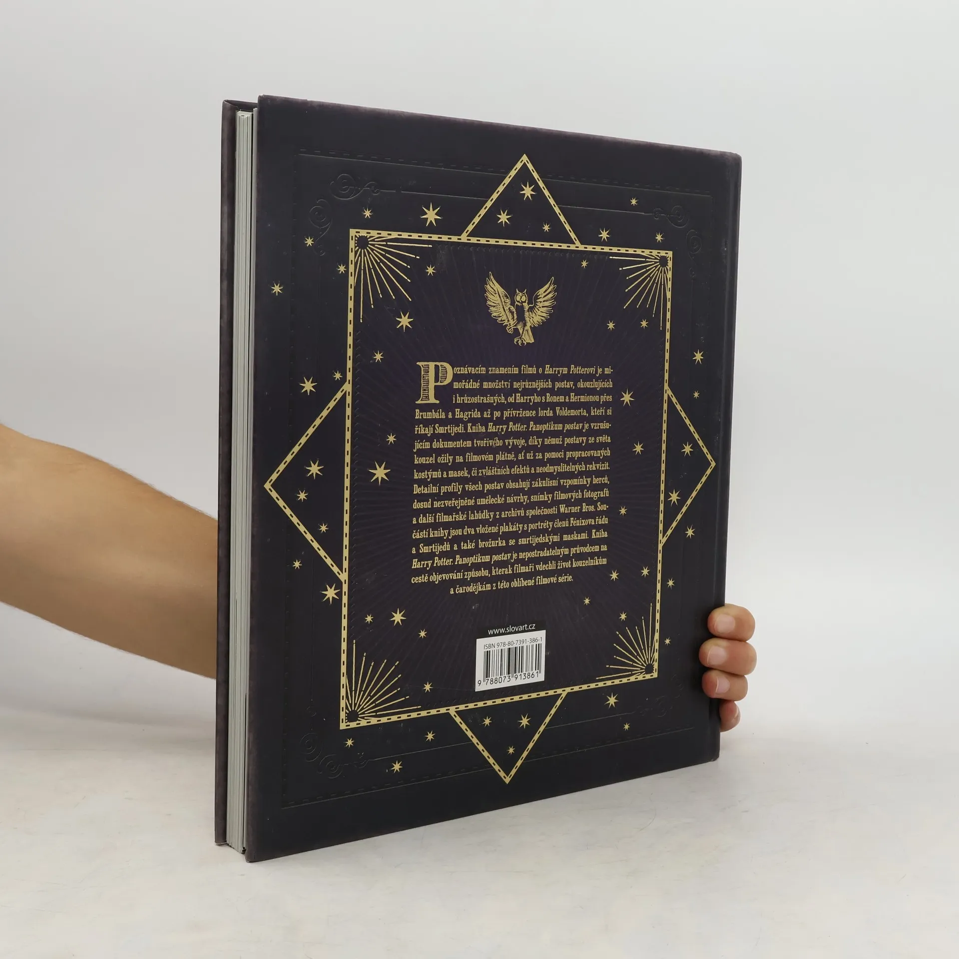 Třetí ze série knih o světě filmů o Harrym Potterovi, která je jakousi encyklopedií postav Potterovského světa. V knihách a filmech o Harrym Potterovi se vyskytuje množství zajímavých postav - nejen Harry, Ron a Hermiona, Brumbál, Hagrid nebo stoupenci Lorda Voldemorta smrtijedi, ale i řada jiných. Některé jsou milé, jiné nahánějí strach. Kniha Harry Potter: Panoptikum postav podrobně popisuje, jak se hrdinové nejoblíbenější kouzelnické série dostali na filmové plátno. Její součástí jsou plakáty všech členů Fénixova řádu a nejznámějších smrtijedů a brožurka se vzory smrtijedských masek. Je to poslední kniha této sběratelské edice (knihy Bestiář Harryho Pottera a Harry Potter Magická místa z filmů, a proto nesmí chybět ve sbírce žádného pravého fanouška Harryho Pottera.
