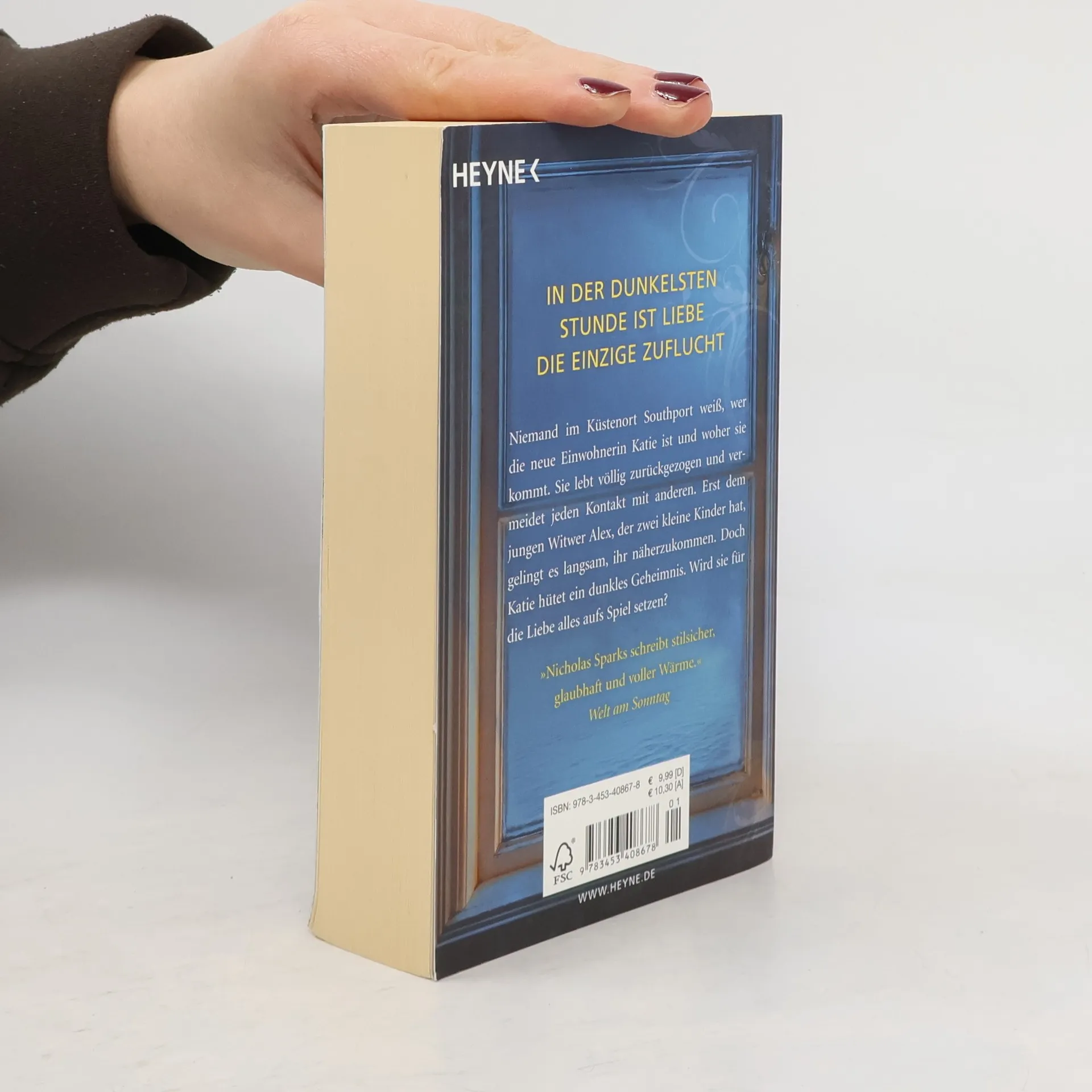 Niemand schreibt über die Liebe wie Nicholas Sparks Niemand im Küstenort Southport weiß, wer die neue Einwohnerin Katie ist und woher sie kommt. Sie lebt komplett zurückgezogen und vermeidet jeden Kontakt mit anderen. Erst dem jungen Witwer Alex, der zwei kleine Kinder hat, gelingt es langsam und behutsam, ihr näherzukommen. Doch Katie hütet ein dunkles Geheimnis. Wird sie für die Liebe alles aufs Spiel setzen?