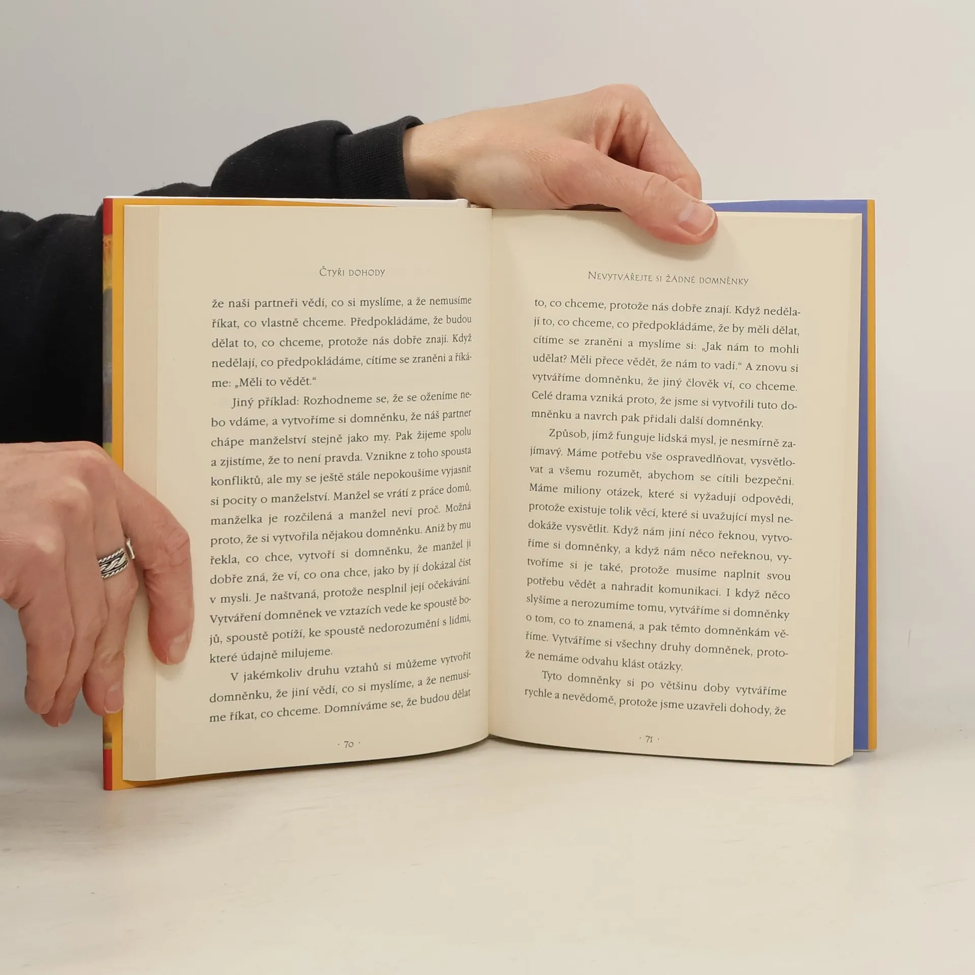 Praktický průvodce osobní svobodou. Ve Čtyřech dohodách odhaluje don Miguel Ruiz zdroj omezujících názorů, které nás připravují o radost a vedou k zbytečnému utrpení. Čtyři dohody, založené na staré toltécké moudrosti, nabízejí silný kód chování, který dokáže rychle proměnit náš život v nový prožitek svobody, opravdového štěstí a lásky.