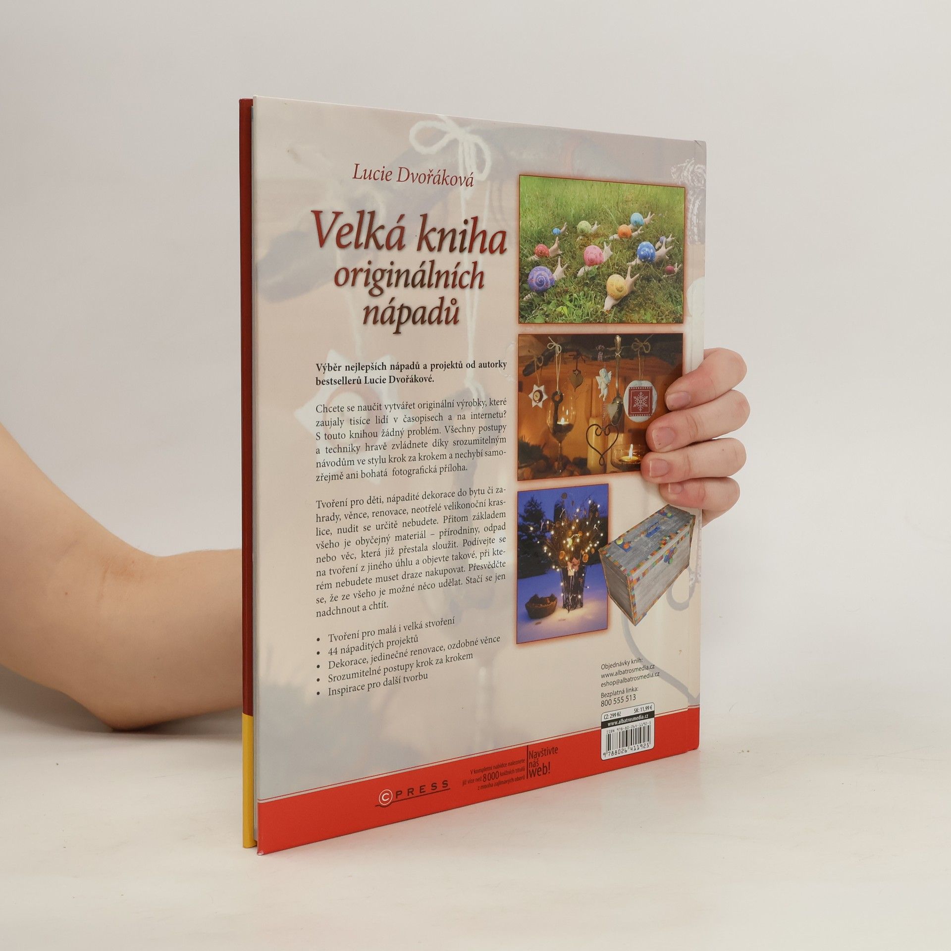 Výběr nejlepších nápadů a projektů od autorky bestsellerů Lucie Dvořákové! Chcete se naučit vytvářet originální výrobky, které zaujaly tisíce lidí v časopisech a na internetu? S touto knihou žádný problém. Všechny postupy a techniky hravě zvládnete díky srozumitelným návodům ve stylu krok za krokem a nechybí ani samozřejmě bohatá fotografická příloha. Tvoření pro děti, nápadité dekorace do bytu či zahrady, věnce, renovace, neotřelé velikonoční kraslice, nudit se určitě nebudete.