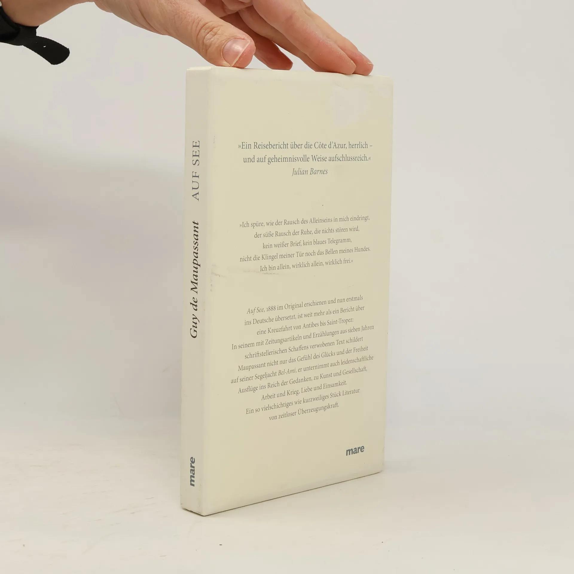 Auf See ist Maupassants Bericht über eine zehntägige Kreuzfahrt mit seiner Jacht von Antibes bis Saint Tropez und gleichzeitig eine Reise durch Geist und Seele des Schriftstellers. Er reflektiert in seinem Schiffstagebuch über Kunst und Gesellschaft, Krieg und Liebe, Glück und Einsamkeit. Während die Jacht ihn Welle für Welle in die endlose Weite der Gedanken trägt, holen ihn die kurzen Landgänge in die Gegenwart und das Schicksal seiner Zeitgenossen zurück. So wechseln sich philosophische Reflexionen mit szenisch-kritischen Betrachtungen über seine Landsleute ab. Die zeitlosen Texte sind vielschichtig und inspirierend und laden den Leser zum Nachdenken und Verweilen ein.