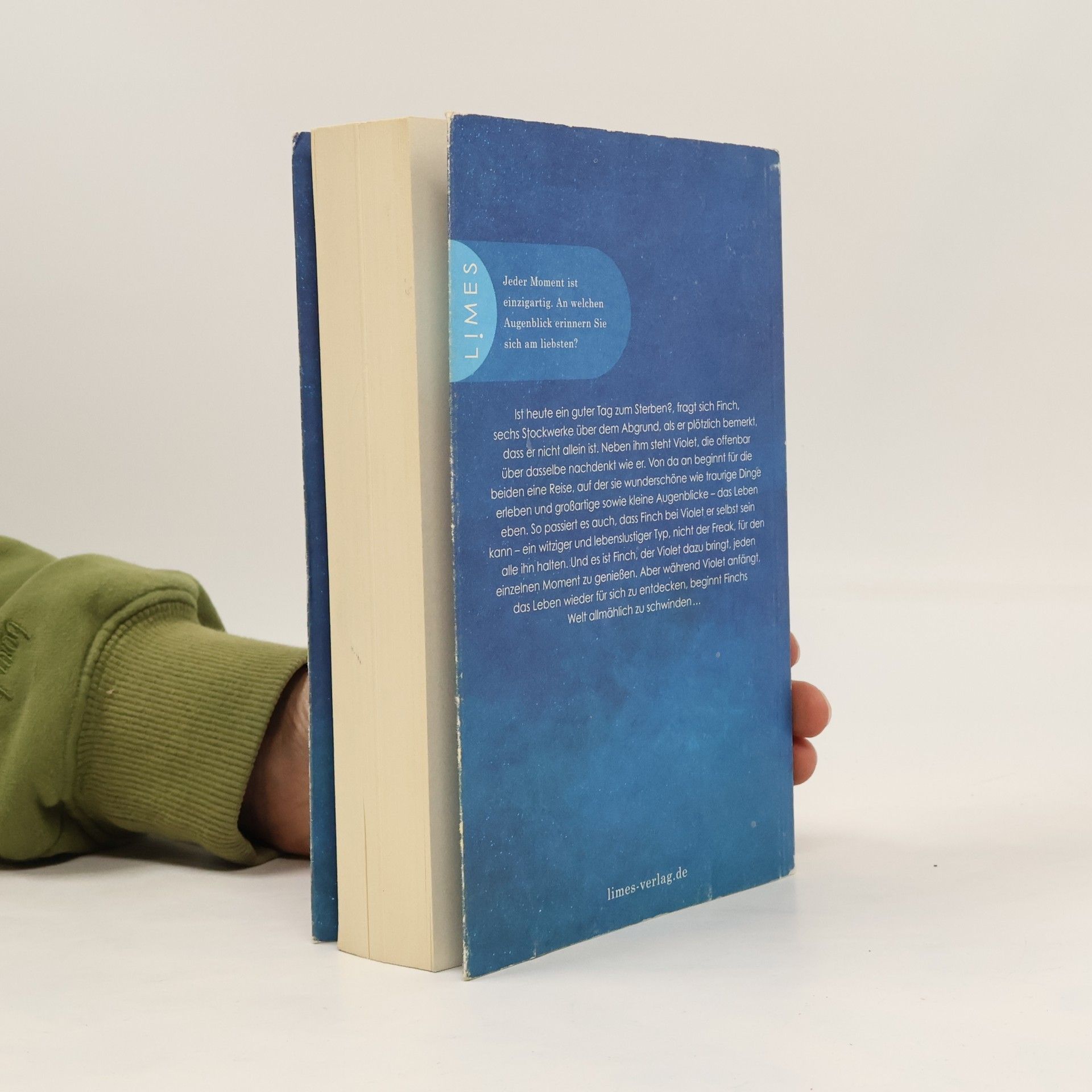 Ein Mädchen lernt zu leben - von einem Jungen, der sterben will Ist heute ein guter Tag zum Sterben?, fragt sich Finch, sechs Stockwerke über dem Abgrund auf einem Glockenturm, als er plötzlich bemerkt, dass er nicht allein ist. Neben ihm steht Violet, die offenbar über dasselbe nachdenkt wie er. Von da an beginnt für die beiden eine Reise, auf der sie wunderschöne wie traurige Dinge erleben und großartige sowie kleine Augenblicke – das Leben eben. So passiert es auch, dass Finch bei Violet er selbst sein kann – ein verwegener, witziger und lebenslustiger Typ, nicht der Freak, für den alle ihn halten. Und es ist Finch, der Violet dazu bringt, jeden einzelnen Moment zu genießen. Aber während Violet anfängt, das Leben wieder für sich zu entdecken, beginnt Finchs Welt allmählich zu schwinden…