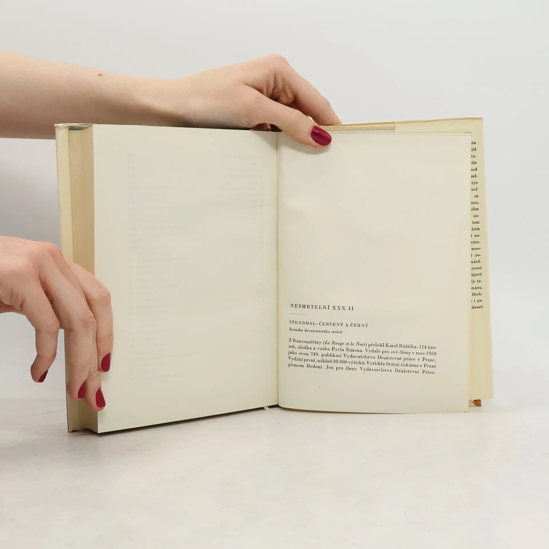 Hrdina knihy Julien Sorel je skvěle vykresleným typem mladého kariéristy a pokrytce, který proto, aby unikl vojenskému stejnokroji, si podle požadavků reakční doby zvolí kněžské povolání. Využívá přízně žen, aby mohl rychleji postupovat na společenském žebříčku bez ohledu na utrpení,které kolem sebe působí. Dílo, které zpodobnilo venkovskou i městskou společnost po Napoleonově pádu a nástupu Bourbonů, se přes počáteční nepříznivé přijetí stalo jedním ze základních kamenů světové literární dědictví.