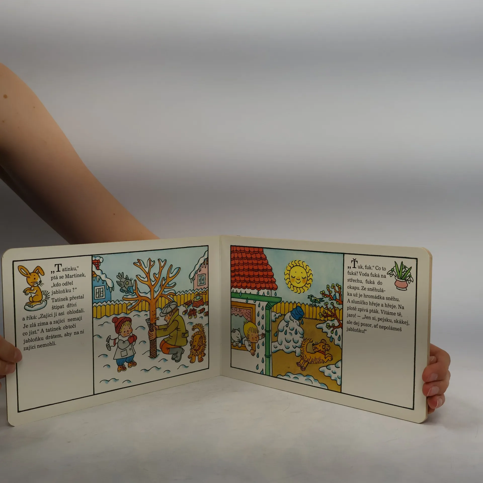 Obrázkové leporelo pro nejmenší děti o Martínkovi, který s maminkou a tatínkem pečuje o jabloňku.