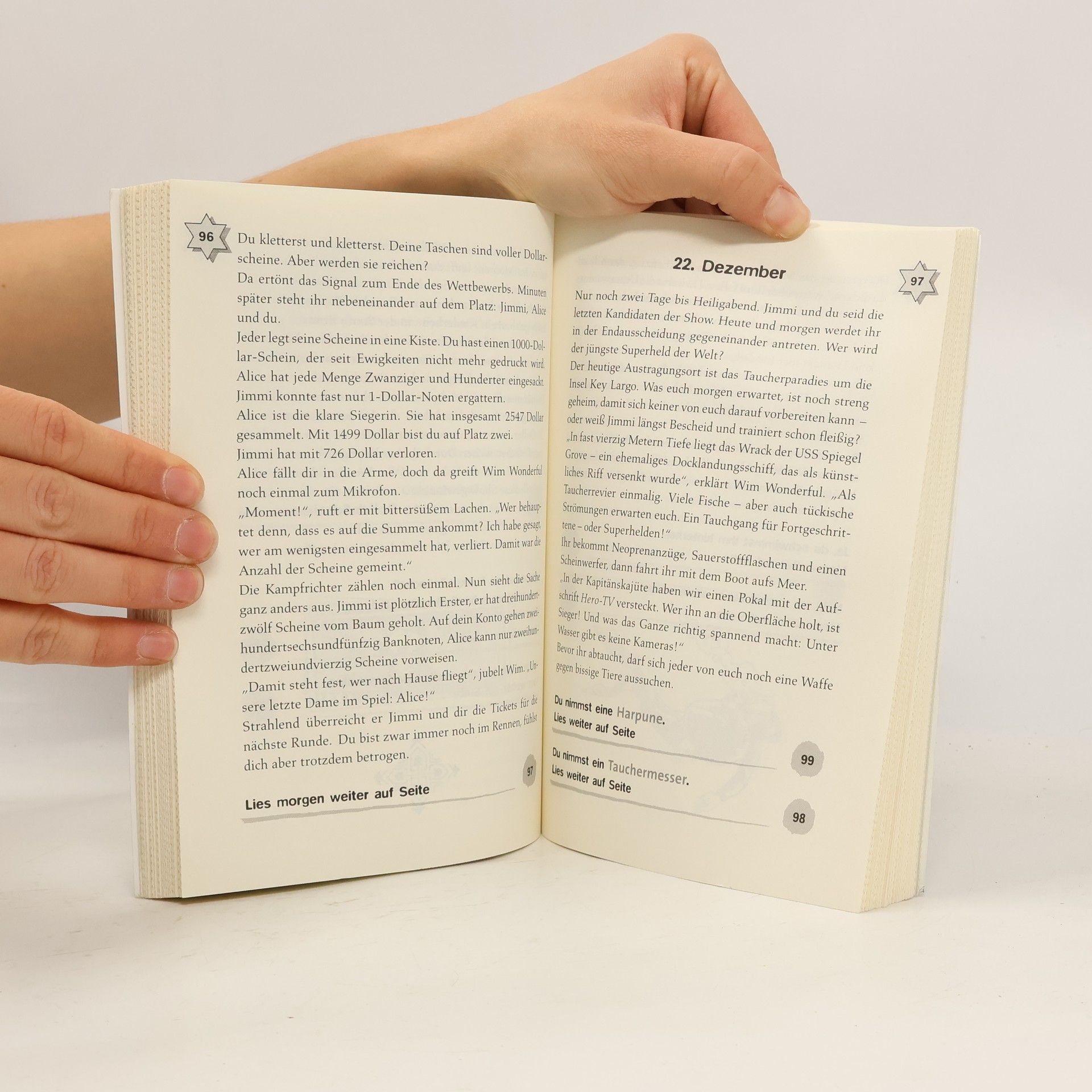 Deine Eltern sind Entwicklungshelfer in Ghana. Gern würdest du sie bei ihrer Arbeit unterstützen. Da erfährst du, dass es in den USA vom 1. bis 24. Dezember einen großen Wettbewerb gibt. Gesucht wird der jüngste Superheld der Welt. Dem Gewinner winken drei Millionen Dollar. Du machst mit, denn mit dem Preisgeld könnten deine Freunde in Ghana weiter auf die Schule gehen. Die einzelnen Challenges führen dich an sagenhafte Schauplätze, aber deine Konkurrenz ist verdammt gut. Hast du trotzdem eine Chance?