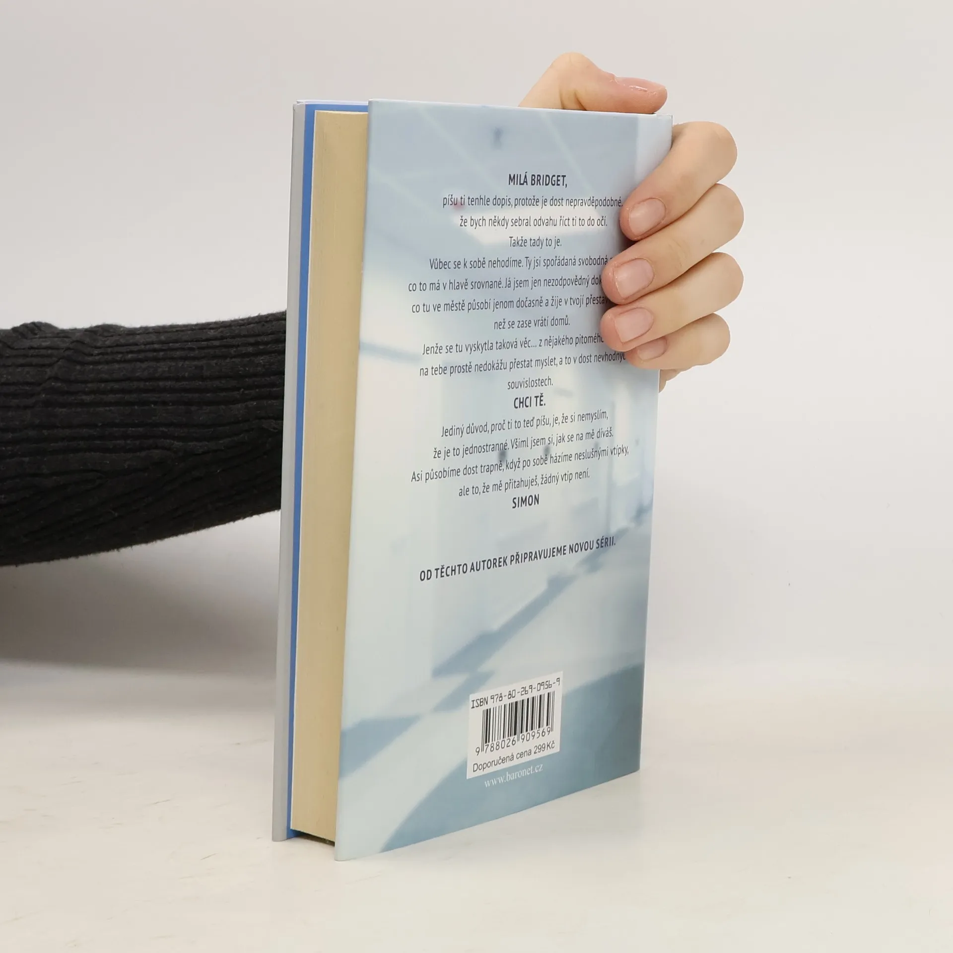 Milá Bridget, píšu ti tenhle dopis, protože je dost nepravděpodobné, že bych někdy sebral odvahu říct ti to do očí. Takže tady to je. Vůbec se k sobě nehodíme. Ty jsi spořádaná svobodná matka, co to má v hlavě srovnané. Já jsem jen nezodpovědný doktůrek z Anglie, co tu ve městě působí jenom dočasně a žije v tvojí přestavěné garáži, než se zase vrátí domů. Jenže se tu vyskytla taková věc… z nějakého pitomého důvodu na tebe prostě nedokážu přestat myslet, a to v dost nevhodných souvislostech. Chci tě. Jediný důvod, proč ti to teď píšu, je, že si nemyslím, že je to jednostranné. Všiml jsem si, jak se na mě díváš. Asi působím dost trapně, když po sobě házíme neslušnými vtípky, ale to, že mě přitahuješ, žádný vtip není. Takže proč ti to vlastně píšu? Prostě tím chci naznačit, že jsme oba dospělí, sex je zdravá a přirozená věc, a že mě můžeš najít hned za těmi dveřmi z kuchyně do garáže. Mám-li být úplně přesný, chci, abys věděla, že ty dveře odteď nechávám otevřené pro případ, že bys za mnou třeba někdy v noci chtěla zajít. Bez otázek. Přemýšlej o tom. Anebo ne. Jak budeš chtít. Beztak pochybuju, že ti ten dopis vůbec strčím pod dveře. Simon