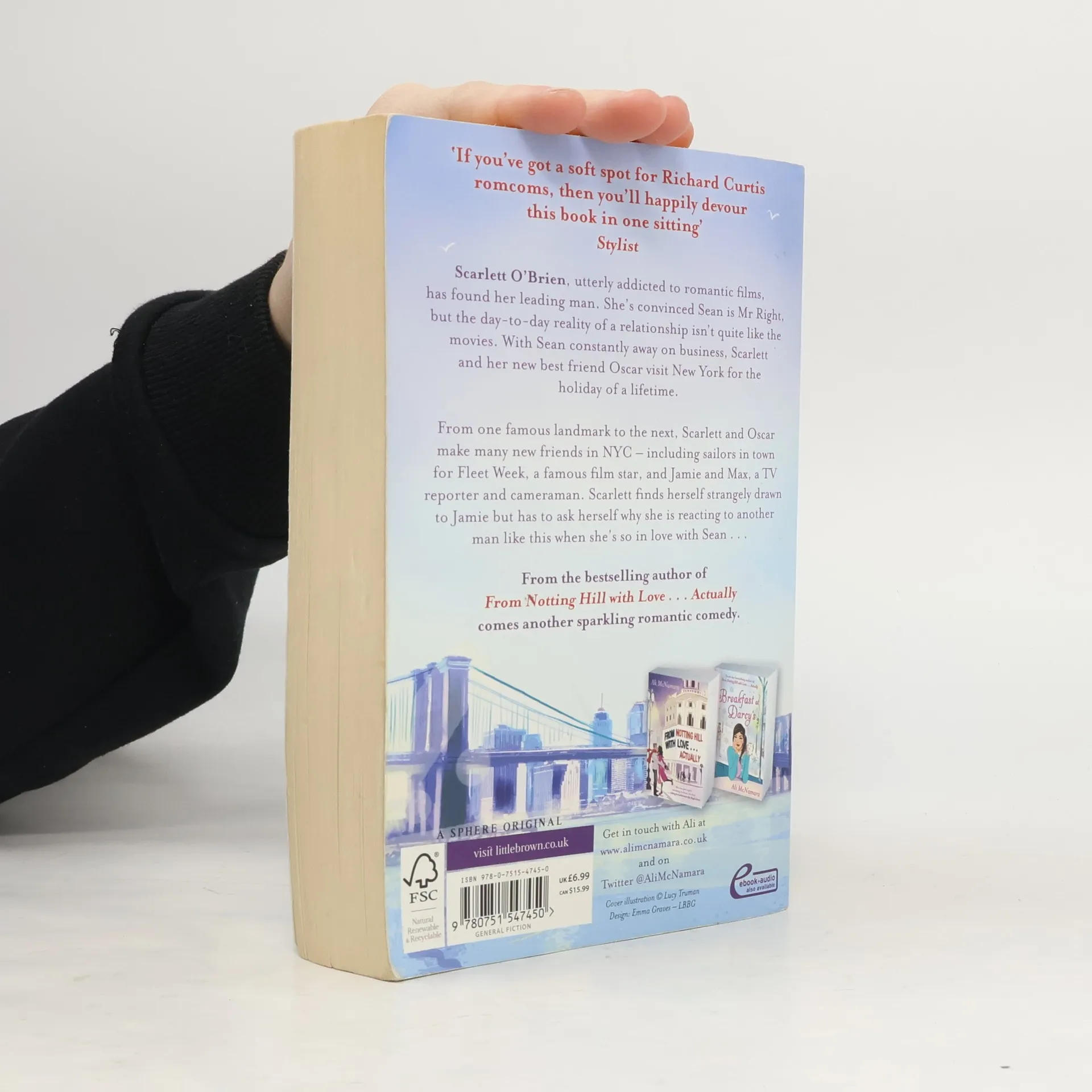 'An irresistible, feel-good story infused with infectious humour and sprinkled with Manhattan magic' - Miranda Dickinson 'An endearing, romantic and fun read for chick-lit (and rom com!) fans' - Closer --------------------------- Scarlett O'Brien, utterly addicted to romantic films, has found her leading man. She's convinced Sean is Mr Right, but the day-to-day reality of a relationship isn't quite like the movies. With Sean constantly away on business, Scarlett and her new best friend Oscar decide to head to New York for the holiday of a lifetime. From one famous landmark to the next, Scarlett and Oscar make many new friends during their adventure - including sailors in town for Fleet Week, a famous film star, and Jamie & Max, a TV reporter and cameraman. Scarlett finds herself strangely drawn to Jamie, they appear to have much in common: a love of films and Jamie's search for a parent he never knew. But Scarlett has to ask herself why she is reacting like this to another man when she's so in love with Sean . . . The third fabulously fun romantic comedy from Ali McNamara, bestselling author of Breakfast at Darcy's and From Notting Hill with Love . . . Actually