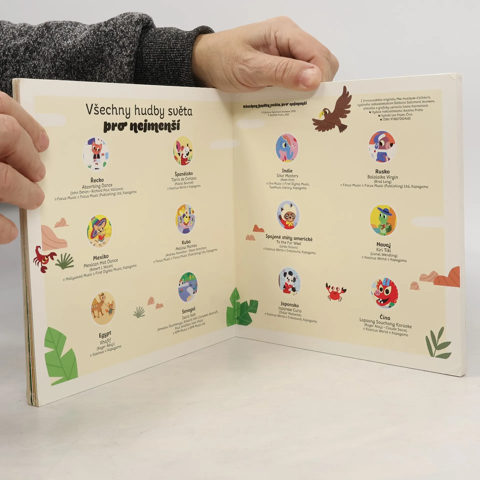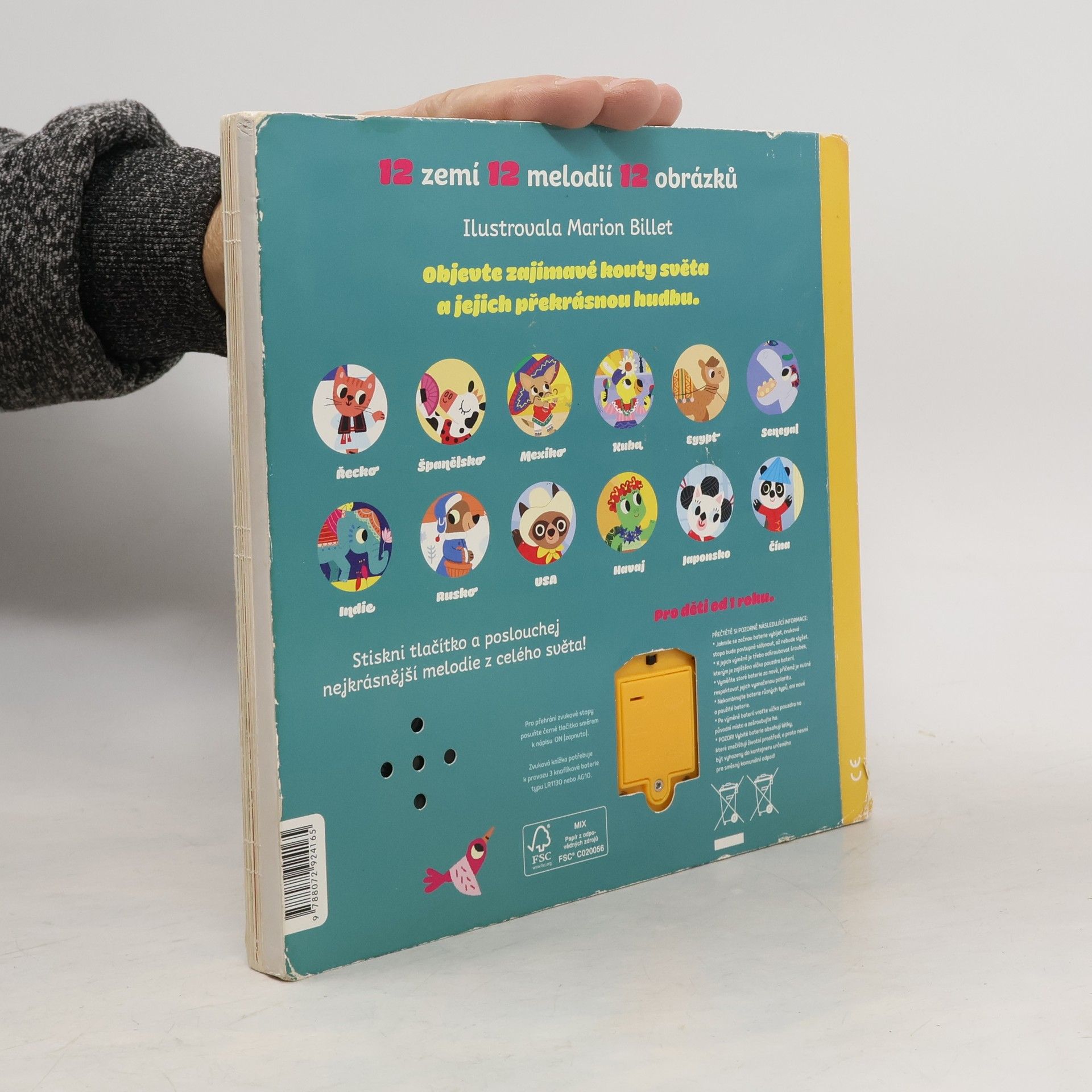 Nádherné zvukové velkoformátové leporelo představí nejmenším dětem melodie typické pro tu kterou část světa. Děti si poslechnou 12 skladeb a melodií z Řecka, Španělska, Mexika, Kuby, Egypta, Senegalu, Indie, Ruska, USA, Havaje, Japonska a Číny . Všechny zvukové nahrávky jsou autentické a jsou ve vysoké kvalitě s dlouhou zvukovou stopou.