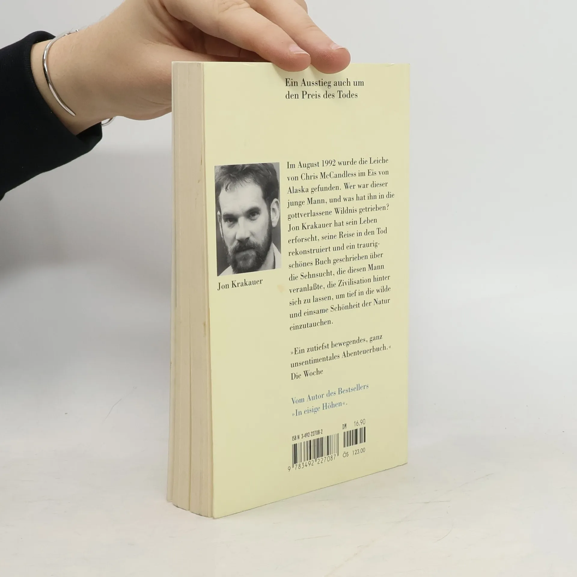 Im August 1992 wurde die Leiche von Chris McCandless im Eis von Alaska gefunden. Wer war dieser junge Mann, und was hatte ihn in die gottverlassene Wildnis getrieben? Jon Krakauer hat sein Leben erforscht, seine Reise in den Tod rekonstruiert und ein traurig-schönes Buch geschrieben über die Sehnsucht, die diesen Mann veranlasste, sämtliche Besitztümer und Errungenschaften der Zivilisation hinter sich zu lassen, um tief in die wilde und einsame Schönheit der Natur einzutauchen.