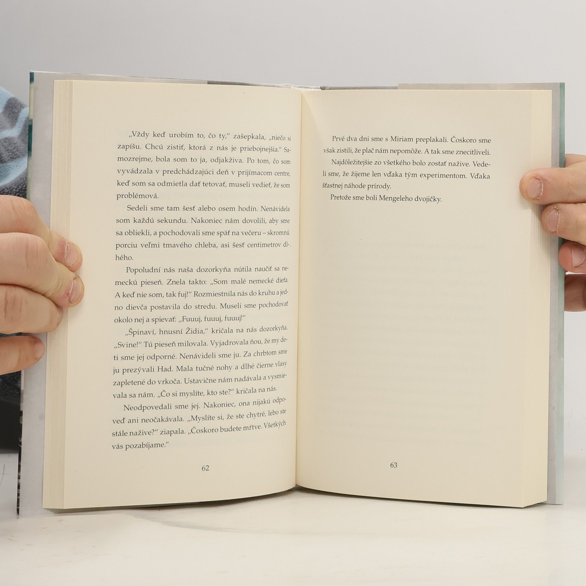 V lete roku 1941 nacisti deportovali Evu Mozesovú Korovú a celú jej rodinu do Osvienčimu. V priebehu tridsiatich minút ich od seba oddelili. Eviných rodičov a staršie sestry poslali rovno do plynovej komory, kým Eva a jej sestra-dvojička Miriam sa ocitli v rukách Mengeleho, ktorý bol známy aj ako Anjel smrti. Mali vtedy len desať rokov. Dvojičky mali v Osvienčime určité „privilégiá“ – mohli nosiť vlastné oblečenie a nevyholili im hlavy dohola, ale stali sa objektom Mengeleho sadistických experimentov. Veľa z nich zomrelo v dôsledku pokusov, chorôb a hladovania. Ale ďalšie prežili vďaka obdivuhodnej detskej vynaliezavosti, odvahe a neochvejnej vôli žiť. Eva si s odstupom desaťročí spomína na svoje šťastné detstvo v Transylvánii, vzostup antisemitizmu a jeho vplyv na jej rodinu. Mesiace strávené v Osvienčime opisuje vecne, citlivo a s veľkou dávkou nadhľadu. Jej rozprávanie je inšpiratívnym príbehom o vytrvalosti, odhodlaní a boji o prežitie tvárou v tvár extrémnemu zlu. V epilógu Eva hovorí o svojej nevšednej ceste k uzdraveniu a pozoruhodnom rozhodnutí verejne odpustiť nacistom. V Spojených štátoch amerických, kam sa z Izraela presťahovala za manželom, založila múzeum holokaustu, prednášala po celom svete a organizovala exkurzie do Osvienčimu. Svoj život zasvätila šíreniu posolstva o odpustení, mieri a odstránení nenávisti a predsudkov na svete.