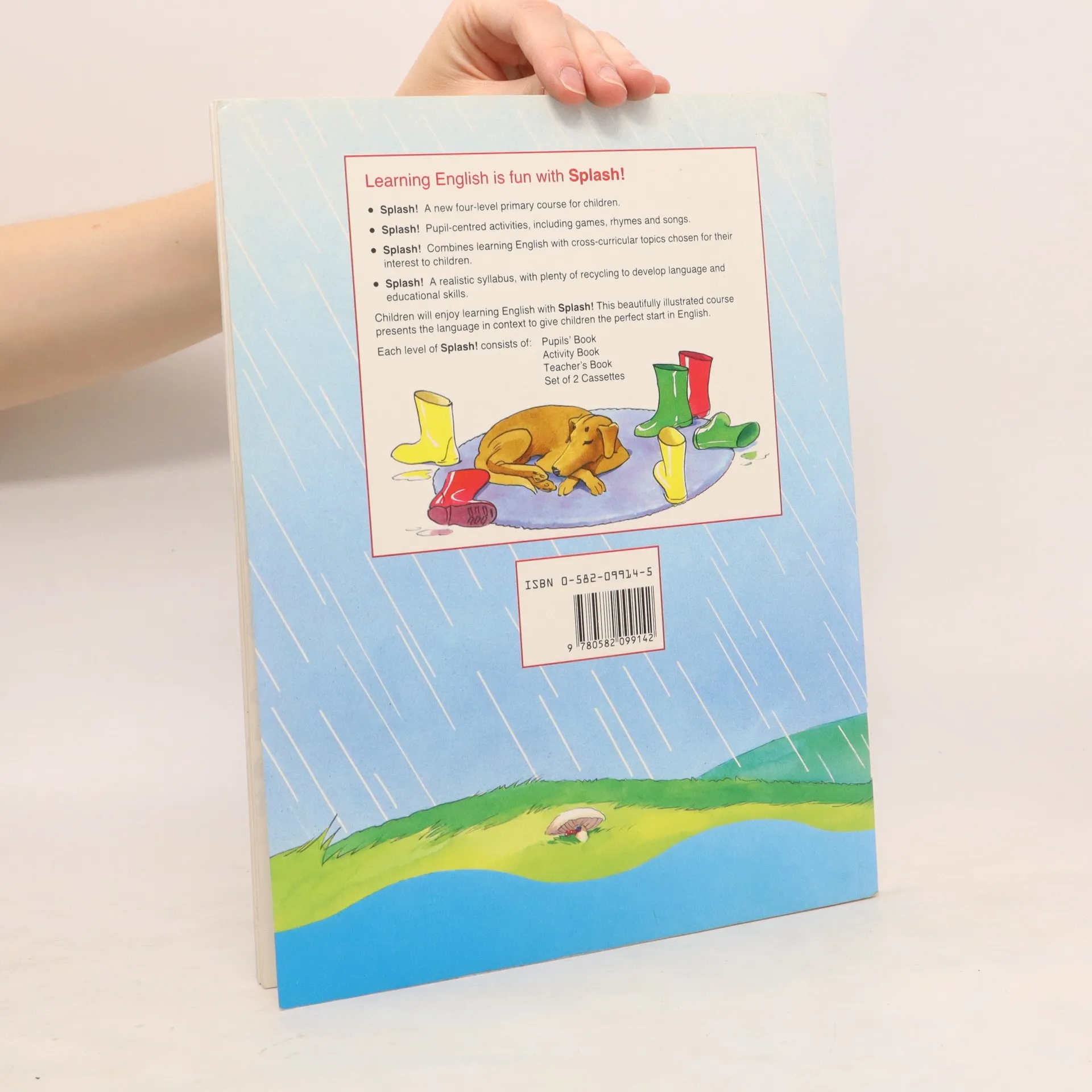 Splash is a four-level course for 7 to 12 year-olds, which has been designed to make learning English easy and fun. It combines English with cross-curricular topics chosen for their interest to children. Pupils learn by doing, in pairs and in groups, through stories, games, drama, songs and rhymes, and consolidate what they learn through book-centred activities.