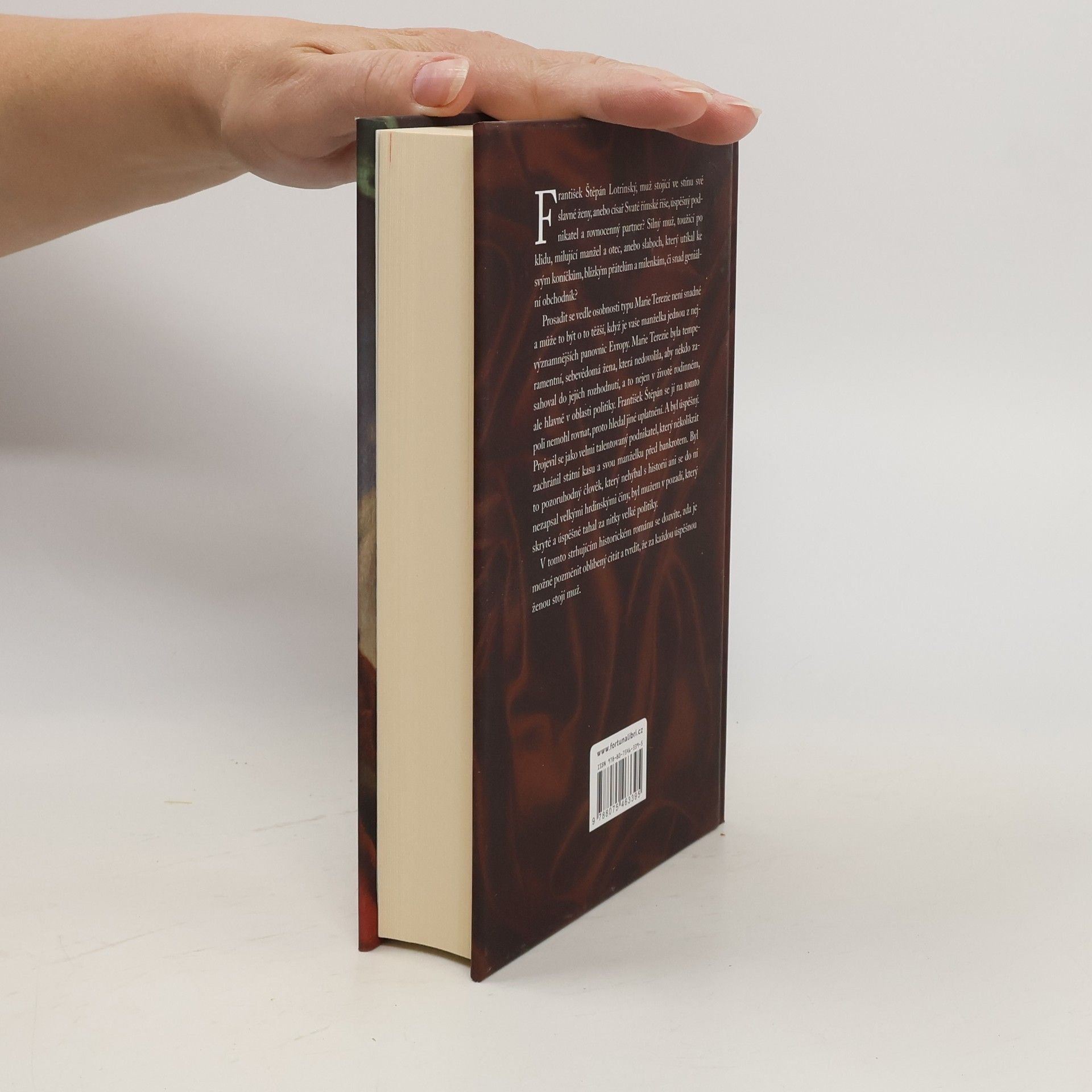 František Štěpán Lotrinský, muž stojící ve stínu své slavné ženy, anebo císař Svaté římské říše, úspěšný podnikatel a rovnocenný partner? Silný muž, toužící po klidu, milující manžel a otec, anebo slaboch, který utíkal ke svým koníčkům, blízkým přátelům a milenkám, či snad geniální obchodník? Prosadit se vedle osobnosti typu Marie Terezie není snadné a může to být o to těžší, když je vaše manželka jednou z nejvýznamnějších panovnic Evropy. Marie Terezie byla temperamentní, sebevědomá žena, která nedovolila, aby někdo zasahoval do jejích rozhodnutí, a to nejen v životě rodinném, ale hlavně v oblasti politiky. František Štěpán se jí na tomto poli nemohl rovnat, proto hledal jiné uplatnění. A byl úspěšný. Projevil se jako velmi talentovaný podnikatel, který několikrát zachránil státní kasu a svou manželku před bankrotem. Byl to pozoruhodný člověk, který nehýbal s historií ani se do ní nezapsal velkými hrdinskými činy, byl mužem v pozadí, který skrytě a úspěšně tahal za nitky velké politiky. V tomto strhujícím historickém románu se dozvíte, zda je možné pozměnit oblíbený citát a tvrdit, že za každou úspěšnou ženou stojí muž.