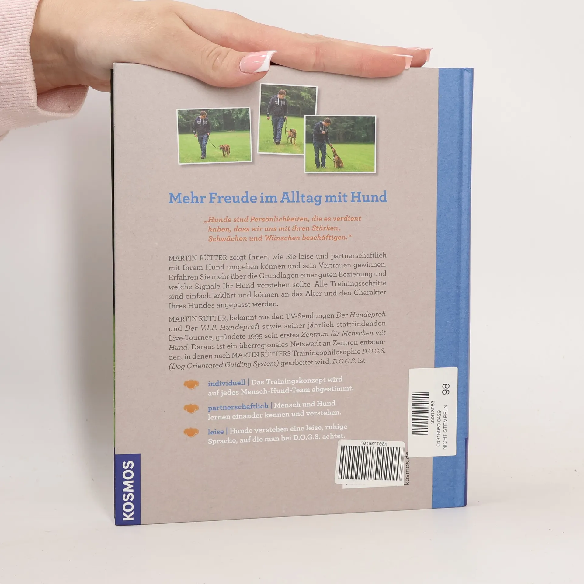 In diesem Buch erfährt man vom Hundeprofi Martin Rütter alles über die Grundlagen einer guten Beziehung zwischen Mensch und Hund. Wie man die Bindung zu seinem Hund verstärken kann, welche Signale er verstehen sollte und wie man mehr Abwechslung in den Alltag mit Hund bringen kann. Ganz nach dem Motto des Tierpsychologen Martin Rütter: „Hunde sind Persönlichkeiten, die es verdient haben, dass wir uns mit ihren Wünschen, Stärken und Schwächen beschäftigen.“