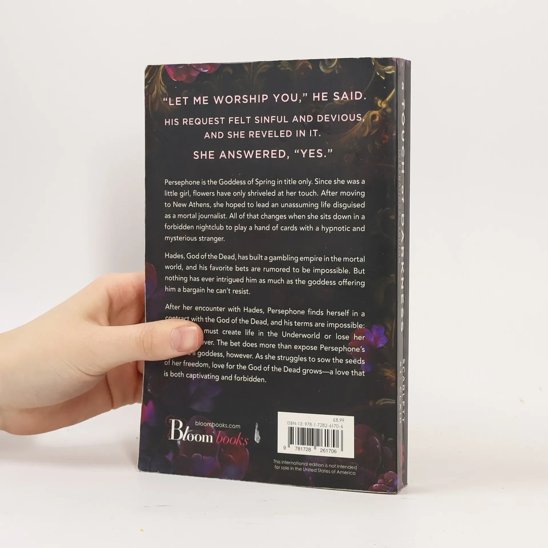 From bestselling author Scarlett St. Clair comes a dark and enthralling reimagining of the Hades and Persephone Greek myth. "Let me worship you," he said. She remembered the words she had whispered to him in the back of the limo after La Rose. "You will worship me, and I won't even have to order you." His request felt sinful and devious, and she reveled in it. She answered, "Yes." Persephone is the Goddess of Spring in title only. Since she was a little girl, flowers have only shriveled at her touch. After moving to New Athens, she hoped to lead an unassuming life disguised as a mortal journalist. All of that changes when she sits down in a forbidden nightclub to play a hand of cards with a hypnotic and mysterious stranger. Hades, God of the Dead, has built a gambling empire in the mortal world and his favorite bets are rumored to be impossible. But nothing has ever intrigued him as much as the goddess offering him a bargain he can't resist. After her encounter with Hades, Persephone finds herself in a contract with the God of the Dead, and his terms are impossible: Persephone must create life in the Underworld or lose her freedom forever. The bet does more than expose Persephone's failure as a goddess, however. As she struggles to sow the seeds of her freedom, love for the God of the Dead grows-a love that is both captivating and forbidden.