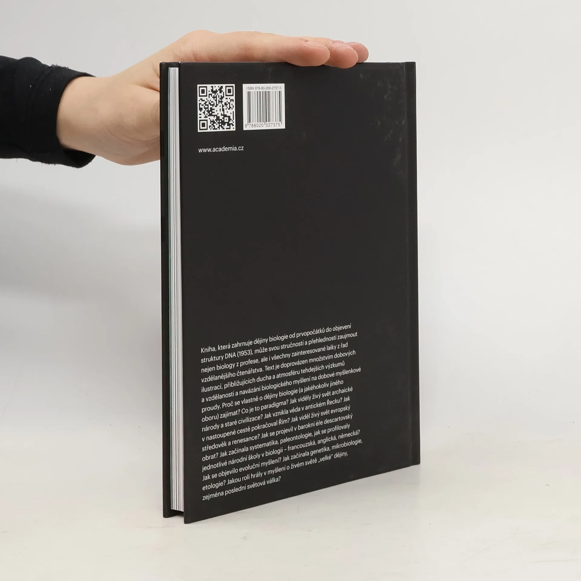 Kniha, která zahrnuje dějiny biologie od prvopočátků do objevení struktury DNA (1953), může svou stručností a přehledností zaujmout nejen biology z profese, ale i všechny zainteresované laiky z řad vzdělanějšího čtenářstva. Text je doprovázen množstvím dobových ilustrací, přibližujících ducha a atmosféru tehdejších výzkumů a vzdělanosti a navázání biologického myšlení na dobové myšlenkové proudy. Proč se vlastně o dějiny biologie (a jakéhokoliv jiného oboru) zajímat? Co je to paradigma? Jak viděly živý svět archaické národy a staré civilizace? Jak vznikla věda v antickém Řecku? Jak v nastoupené cestě pokračoval Řím? Jak viděl živý svět evropský středověk a renesance? Jak se projevil v barokní éře descartovský obrat? Jak začínala systematika, paleontologie, jak se profilovaly jednotlivé národní školy v biologii – francouzská, anglická, německá? Jak se objevilo evoluční myšlení? Jak začínala genetika, mikrobiologie, etologie? Jakou roli hrály v myšlení o živém světě „velké“ dějiny, zejména poslední světová válka?