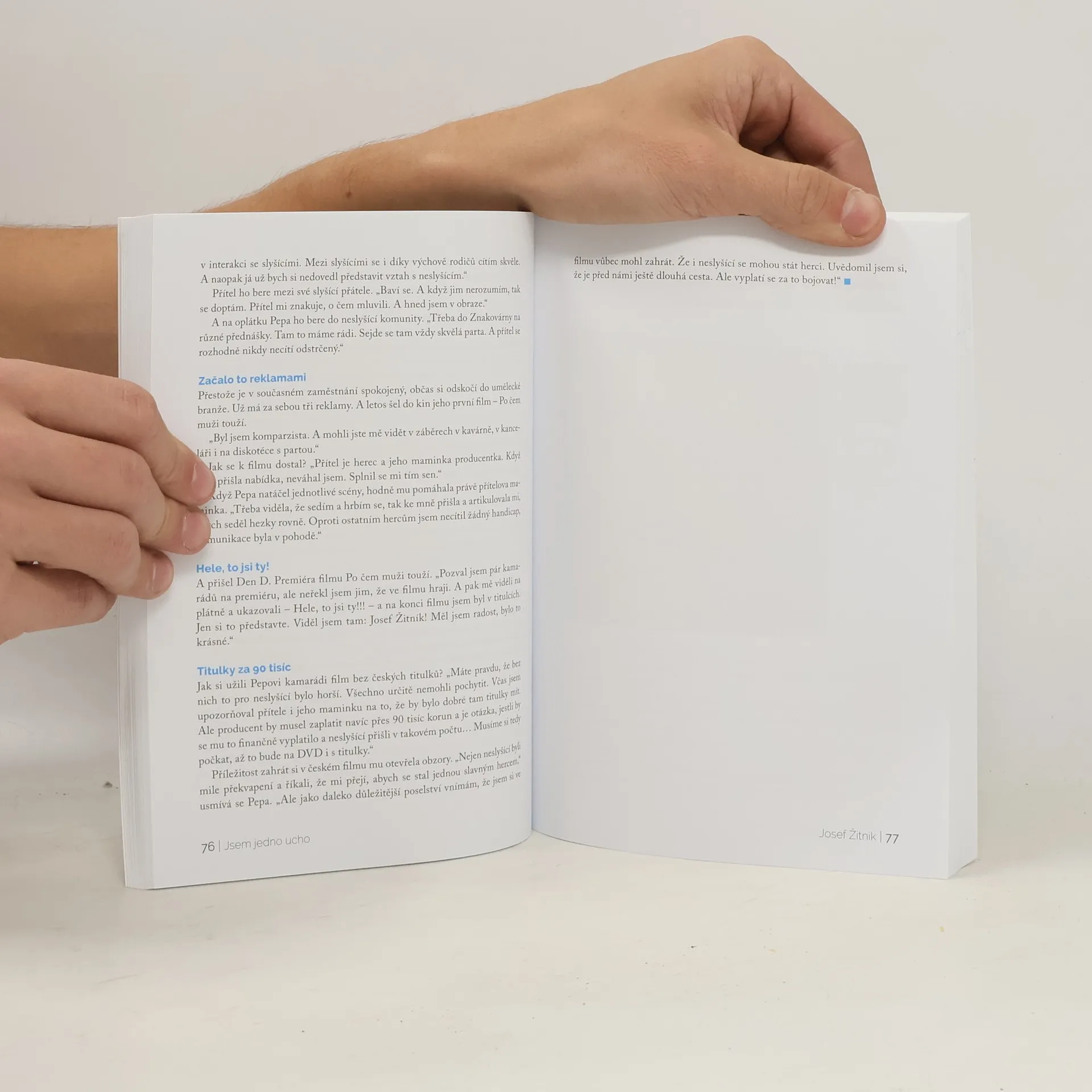 Slovo ucho v názvu na titulní stránce a na obálce vyjádřeno graficky. Kniha Jsem jedno ucho. Stále! od naší tiskové mluvčí Veroniky Cézové získala na slavnostním večeru v Lichtenštejnském paláci dne 6. prosince 2019 ocenění v tiskové kategorii. V televizní kategorii si pak odnesl hlavní cenu neslyšící Milan Fritz za Televizní klub neslyšících (díl s názvem Usherův syndrom). ,,Chceme na malých střípcích každodenních starostí a radostí ukázat, s čím se potýkají lidé s neviditelným handicapem a jak může slyšící společnost pomoci,“ říká šéfredaktorka Cézová. Kniha obsahuje 33 příběhu.