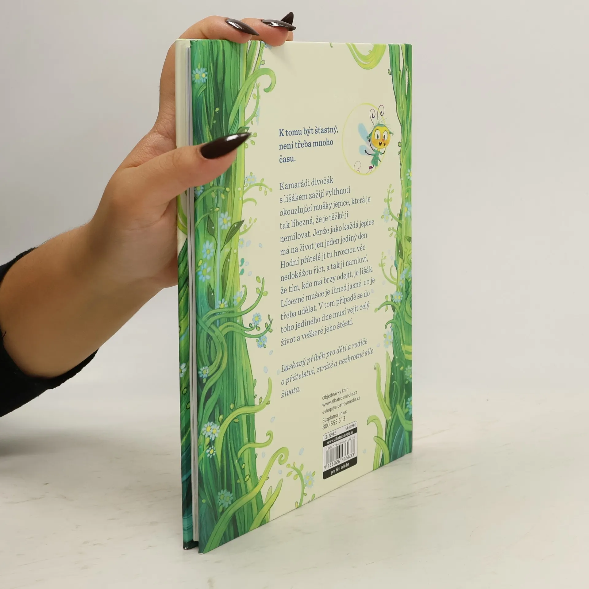 K tomu být šťastný, není třeba mnoho času. Kamarádi divočák s lišákem zažijí vylíhnutí okouzlující mušky jepice, která je tak líbezná, že je těžké ji nemilovat. Jenže jako každá jepice má na život jen jeden jediný den. Hodní přátelé ji tu hroznou věc nedokážou říct, a tak jí namluví, že tím, kdo má brzy odejít, je lišák. Líbezné mušce je ihned jasné, co je třeba udělat. V tom případě se do toho jediného dne musí vejít celý život a veškeré jeho štěstí. Laskavý příběh pro děti a rodiče o přátelství, ztrátě a nezkrotné síle života.