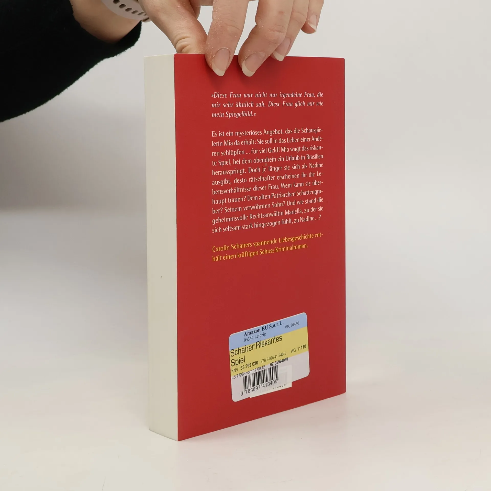 Mia träumt von einer Theaterkarriere als Schauspielerin, doch im realen Leben jobbt sie als Kellnerin. Da bietet ihr ein mysteriöser Fremder ›die Rolle ihres Lebens‹ an: Sie soll ihre angebliche Zwillingsschwester vertreten … Und sie tut es.Doch je länger Mia als Nadine lebt, desto mehr zweifelt sie, wem sie trauen soll. Da ist beispielsweise die seltsame Rechtsanwältin Mariella, zu der sie sich stark hingezogen fühlt. Doch wie stand Mariella zu Nadine? – Carolin Schairers neuer Roman ist eine aufregende Liebesgeschichte mit Tendenz zum Krimi …