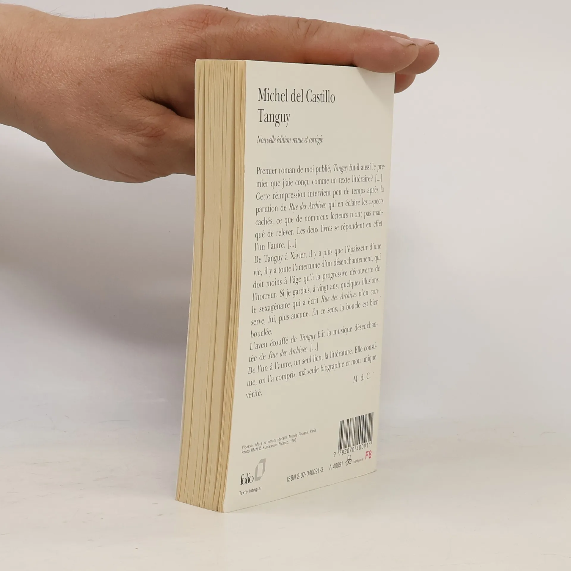 "Premier roman de moi publié, Tanguy fut-il aussi le premier que j'aie conçu comme un texte littéraire ? [...] Cette réimpression intervient peu de temps après la parution de Rue des Archives, qui en éclaire les aspects cachés, ce que de nombreux lecteurs n'ont pas manqué de relever. Les deux livres se répondent en effet l'un l'autre. [...] De Tanguy à Xavier, il y a plus que l'épaisseur d'une vie, il y a toute l'amertume d'un désenchantement, qui doit moins à l'âge qu'à la progressive découverte de l'horreur. Si je gardais, à vingt ans, quelques illusions, le sexagénaire qui a écrit Rue des Archives n'en conserve, lui, plus aucune. En ce sens, la boucle est bien bouclée.L'aveu étouffé de Tanguy fait la musique désenchantée de Rue des archives. [...]De l'un à l'autre, un seul lien, la littérature. Elle constitue, on l'a compris, ma seule biographie et mon unique vérité."Michel del Castillo.