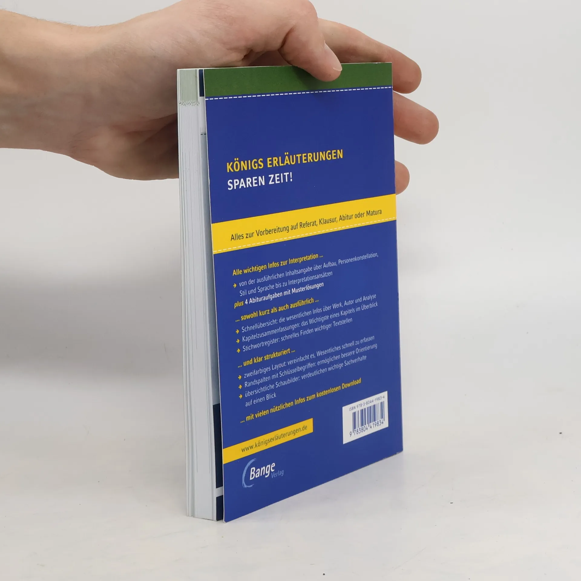 Königs Erläuterungen – Textanalyse und Interpretation mit ausführlicher Inhaltsangabe und Abituraufgaben In einem Band bieten dir die neuen Königs Erläuterungen alles, was du zur Vorbereitung auf Referat, Klausur, Abitur oder Matura benötigst. Das spart Zeit bei der Vorbereitung! Alle wichtigen Infos zur Interpretation... - von der ausführlichen Inhaltsangabe über Aufbau, Personenkonstellation, Stil und Sprache bis zu Interpretationsansätzen - plus 4 Abituraufgaben mit Musterlösungen und 2 weitere zum kostenlosen Download ... sowohl kurz als auch ausführlich ... - Die Schnellübersicht fasst alle wesentlichen Infos zu Werk und Autor und Analyse zusammen. - Die Kapitelzusammenfassungen zeigen dir das Wichtigste eines Kapitels im Überblick – ideal auch zum Wiederholen. - Das Stichwortregister ermöglicht dir schnelles Finden wichtiger Textstellen. ... und klar strukturiert ... - Ein zweifarbiges Layout hilft dir Wesentliches einfacher und schneller zu erfassen. - Die Randspalte mit Schlüsselbegriffen ermöglichen dir eine bessere Orientierung. - Klar strukturierte Schaubilder verdeutlichen dir wichtige Sachverhalte auf einen Blick. ... mit vielen zusätzlichen Infos zum kostenlosen Download.