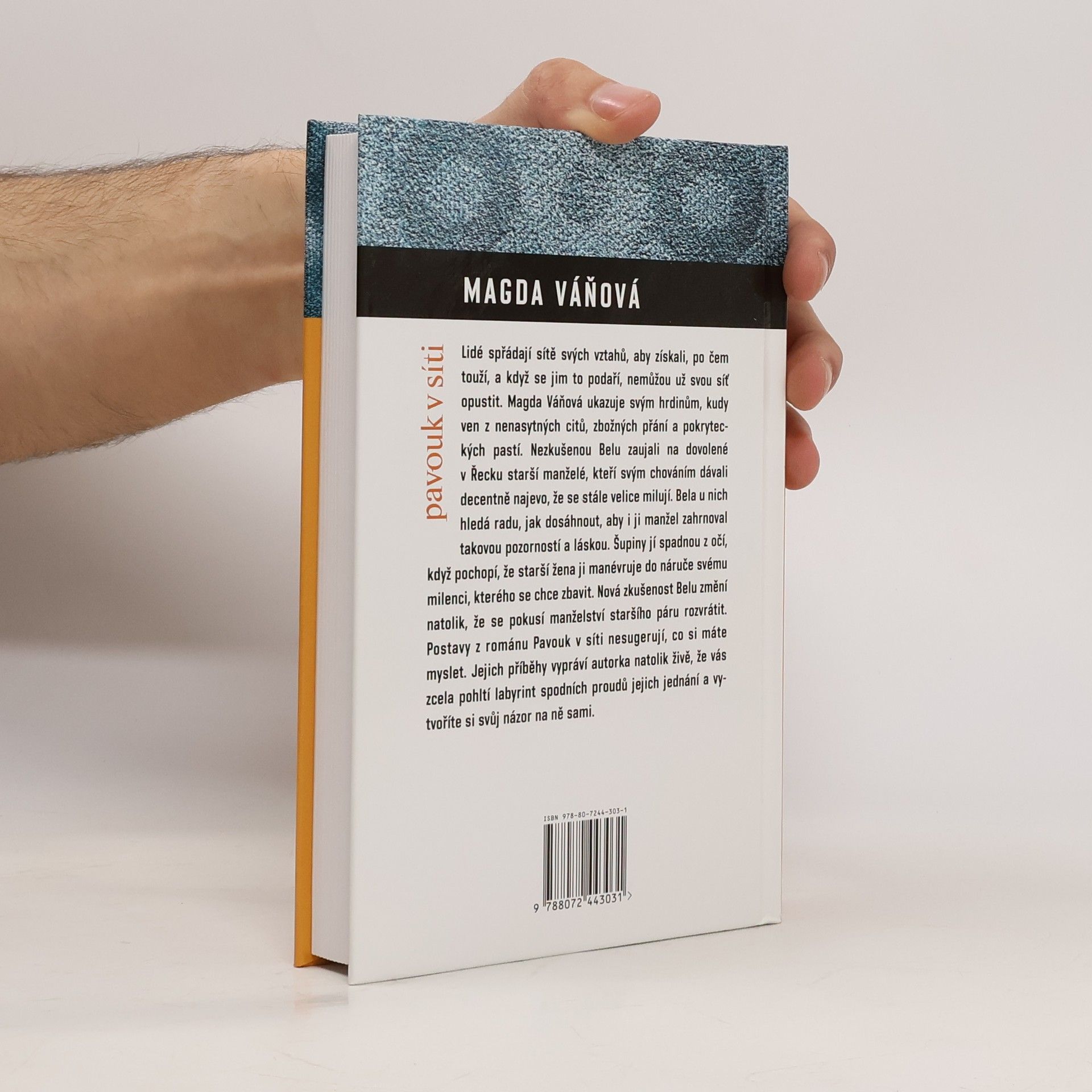 Bela žije s Radimem osm let v domě svých rodičů, ale stále je na vážkách, zda si ji vezme. Vše vyřeší až nevěra. Lidé spřádají sítě svých vztahů, aby získali, po čem touží, a když se jim to podaří, nemůžou už svou síť opustit. Magda Váňová ukazuje svým hrdinům, kudy ven z nenasytných citů, zbožných přání a pokryteckých pastí. Nezkušenou Belu zaujali na dovolené v Řecku starší manželé, kteří svým chováním dávali decentně najevo, že se stále více milují. Mladá žena u nich hledá radu, jak dosáhnout, aby i ji manžel zahrnoval takovou pozorností a láskou. Šupiny jí spadnou z očí, když pochopí, že starší žena ji manévruje do náruče svému milenci, kterého se chce zbavit. Nová zkušenost Belu změní natolik, že se pokusí manželství staršího páru rozvrátit. Postavy z románu Pavouk v síti nesugerují, co si máte myslet. Jejich příběhy vypráví autorka natolik živě, že vás zcela pohltí labyrint spodních proudů jejich jednání a vytvoříte si svůj názor na ně sami.