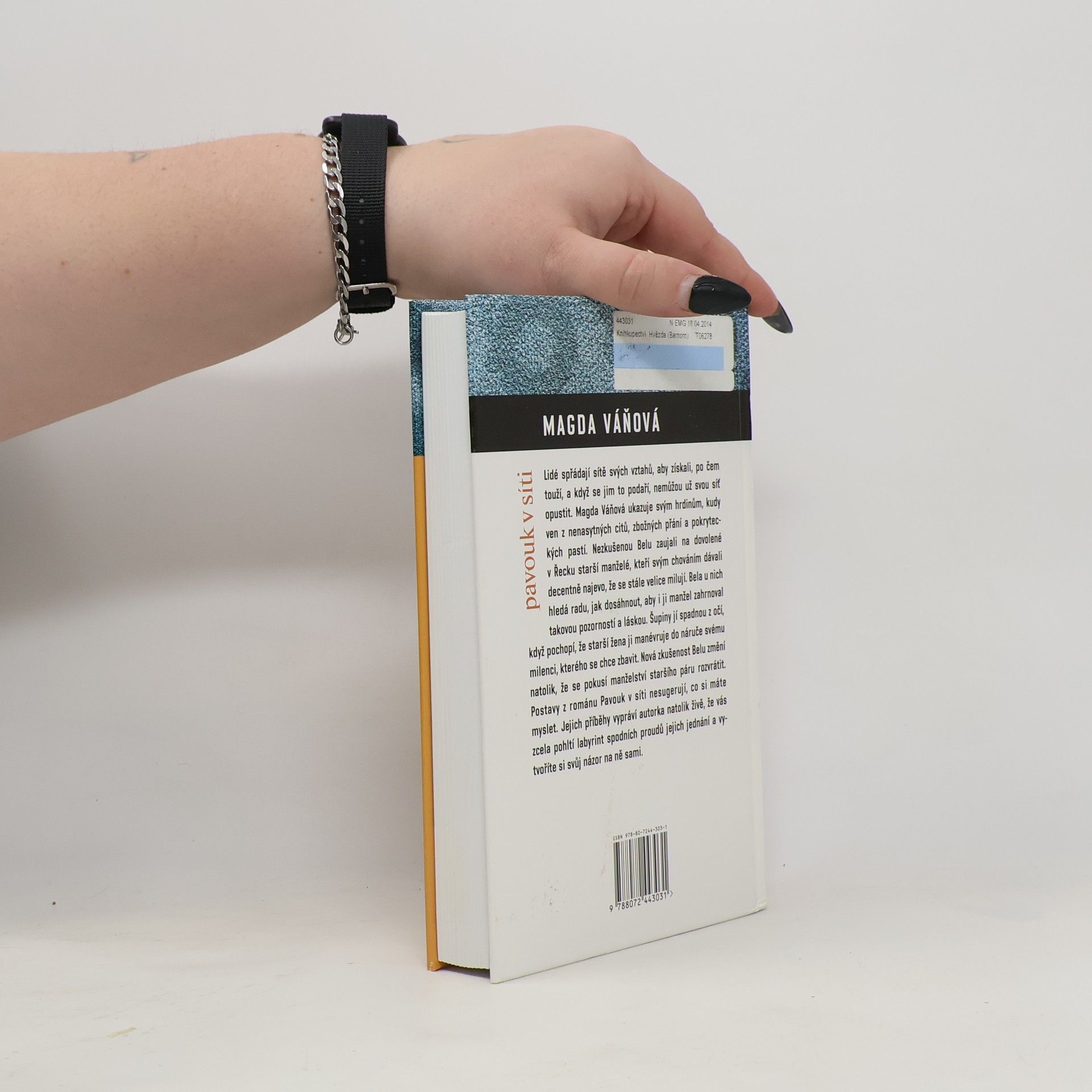 Bela žije s Radimem osm let v domě svých rodičů, ale stále je na vážkách, zda si ji vezme. Vše vyřeší až nevěra. Lidé spřádají sítě svých vztahů, aby získali, po čem touží, a když se jim to podaří, nemůžou už svou síť opustit. Magda Váňová ukazuje svým hrdinům, kudy ven z nenasytných citů, zbožných přání a pokryteckých pastí. Nezkušenou Belu zaujali na dovolené v Řecku starší manželé, kteří svým chováním dávali decentně najevo, že se stále více milují. Mladá žena u nich hledá radu, jak dosáhnout, aby i ji manžel zahrnoval takovou pozorností a láskou. Šupiny jí spadnou z očí, když pochopí, že starší žena ji manévruje do náruče svému milenci, kterého se chce zbavit. Nová zkušenost Belu změní natolik, že se pokusí manželství staršího páru rozvrátit. Postavy z románu Pavouk v síti nesugerují, co si máte myslet. Jejich příběhy vypráví autorka natolik živě, že vás zcela pohltí labyrint spodních proudů jejich jednání a vytvoříte si svůj názor na ně sami.