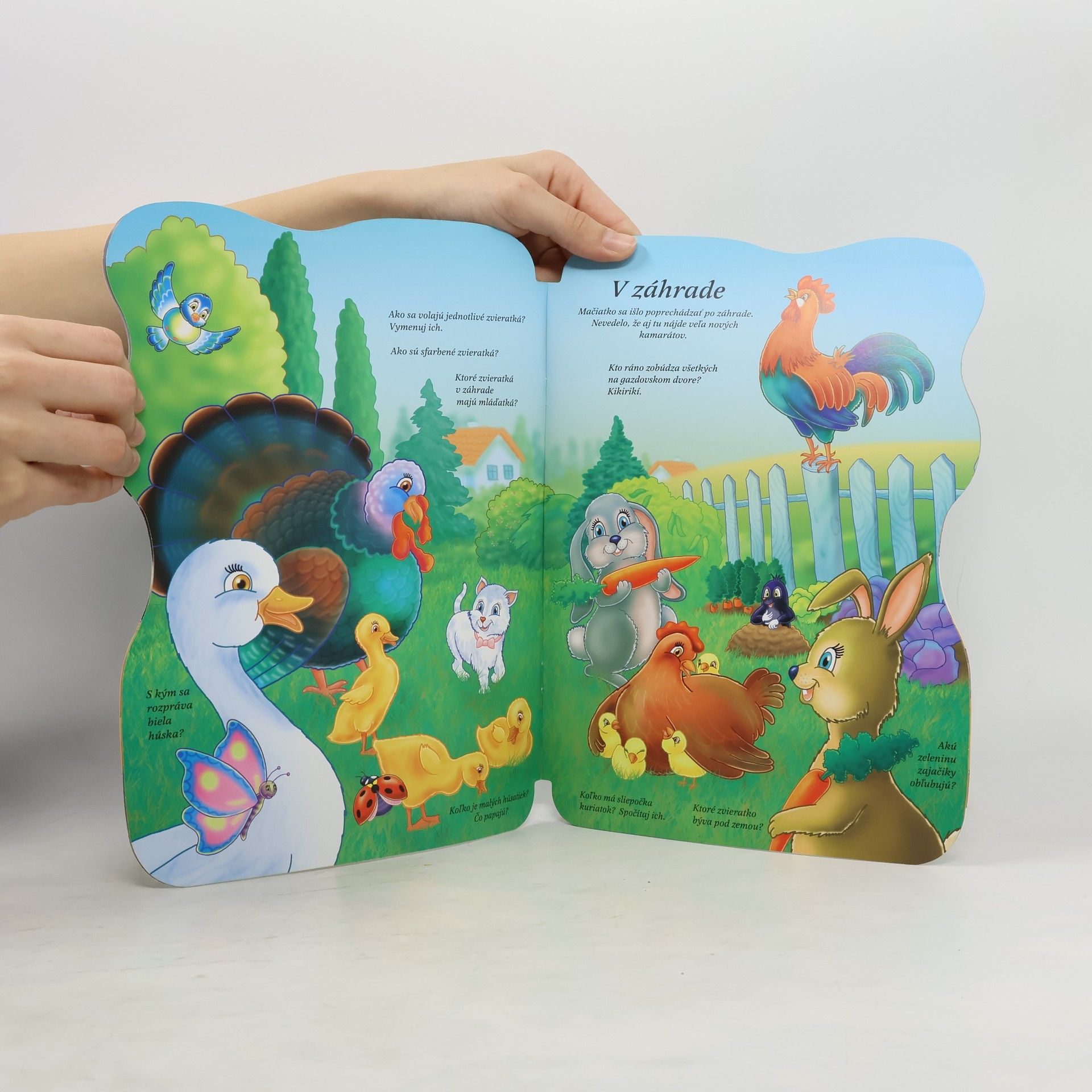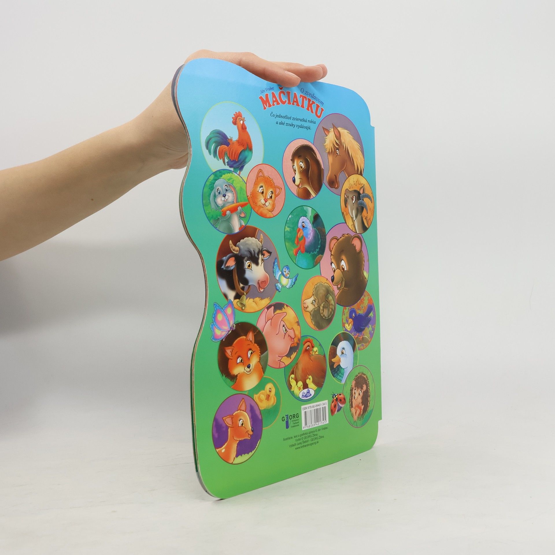V tejto krásnej knižočke malé mačiatko sa prechádza po gazdovstve a jeho okolí a pritom spoznáva jednotlivé zvieratká. A najmenší čitateľ si môže ešte aj vymaľovať svoju knižku.
