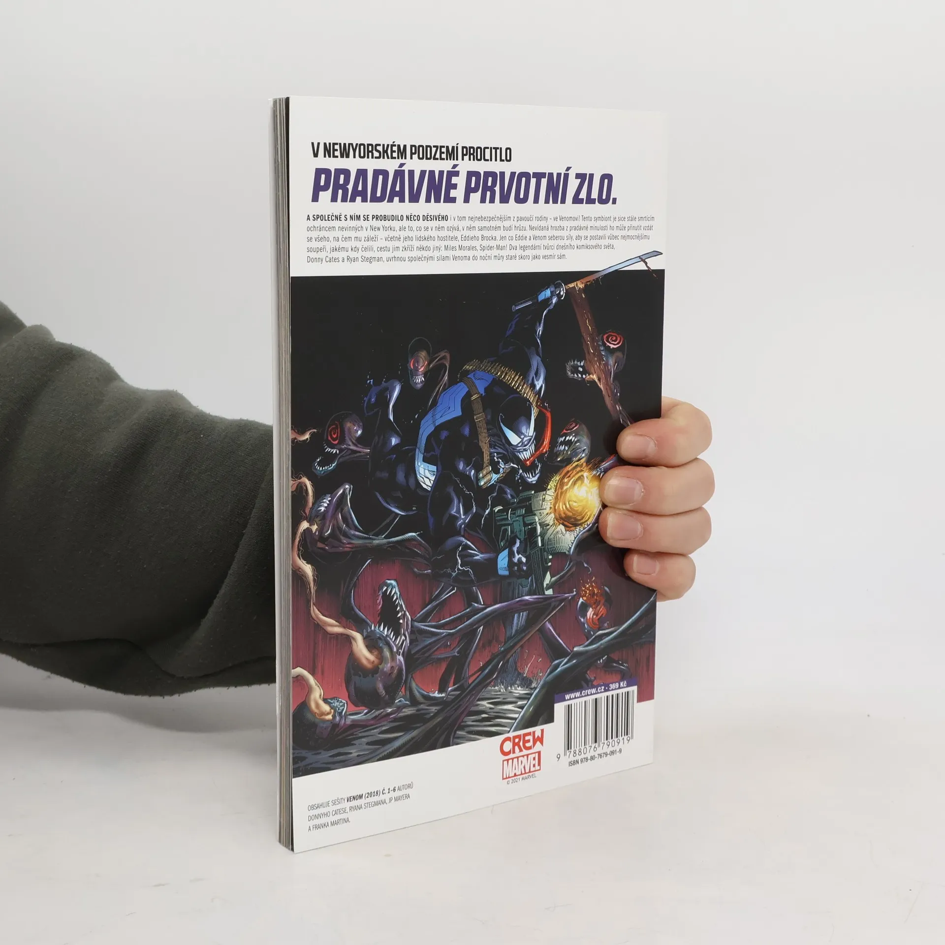 V NEWYORSKÉM PODZEMÍ PROCITLO PRASTARÉ PRVOTNÍ ZLO. A SPOLEČNĚ S NÍM PROCITLO NĚCO SROVNATELNĚ ZLÉHO i v nejhanebnějším ze snovačů pavučin – ve Venomovi! Tento symbiont nadále zůstává smrtícím ochráncem nevinných v New Yorku, dříve nevídaná hrozba ho však může přinutit vzdát se všeho, co je mu drahé – včetně jeho lidského hostitele, Eddieho Brocka. Jen co Eddie a Venom seberou síly, aby se postavili vůbec nejmocnějšímu soupeři, jakému kdy čelili, do cesty se jim postaví někdo jiný: Miles Morales, Spider-Man! Dva nejhustší tvůrci dnešního komiksového světa, Donny Cates a Ryan Stegman, uvrhnou společnými silami Venoma do noční můry staré skoro jako vesmír sám. OBSAHUJE SEŠITY VENOM (2018) č. 1–6 AUTORŮ DONNYHO CATESE, RYANA STEGMANA, JP MAYERA A FRANKA MARTINA.