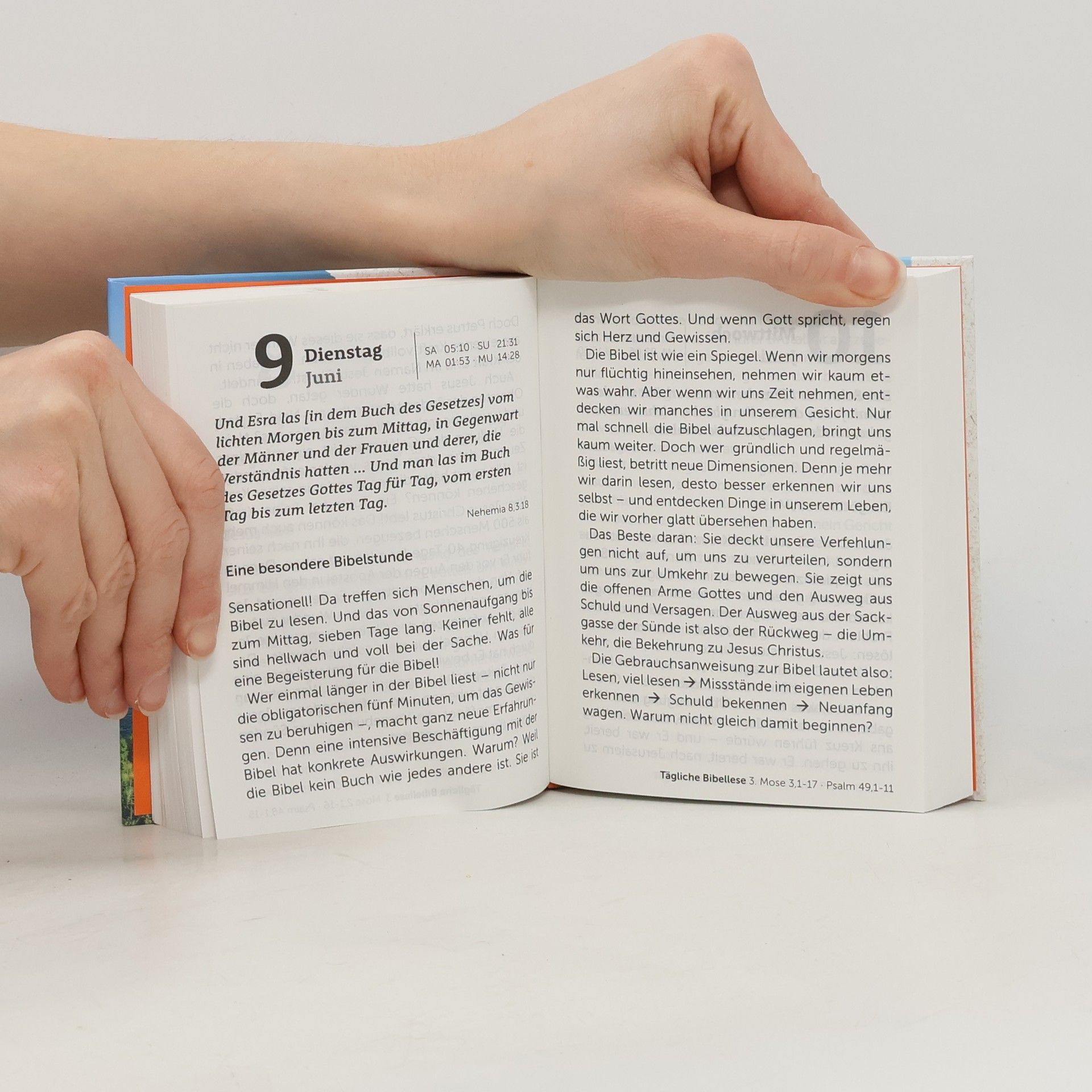 Dieser Kalender wendet sich an alle, die bereit sind, in dieser lautstarken Zeit einen Augenblick hinzuhören, wenn Gott durch sein Wort, die Bibel, zu uns redet. Als Tageskalender trägt er dazu bei, dass sich solche Augenblicke möglichst regelmäßig finden. Hauptanliegen dieses Kalenders ist es, die Leser mit der guten Botschaft von Jesus Christus vertraut zu machen. Aber auch solche, die Christus bereits als ihren Herrn und Retter kennen, werden durch das tägliche Nachdenken über die Aussage der Bibel einen Gewinn haben. - Der ideale, sehr preisgünstige Verteil-Kalender mit stabilem Hardcover-Einband und Premiumpapier.