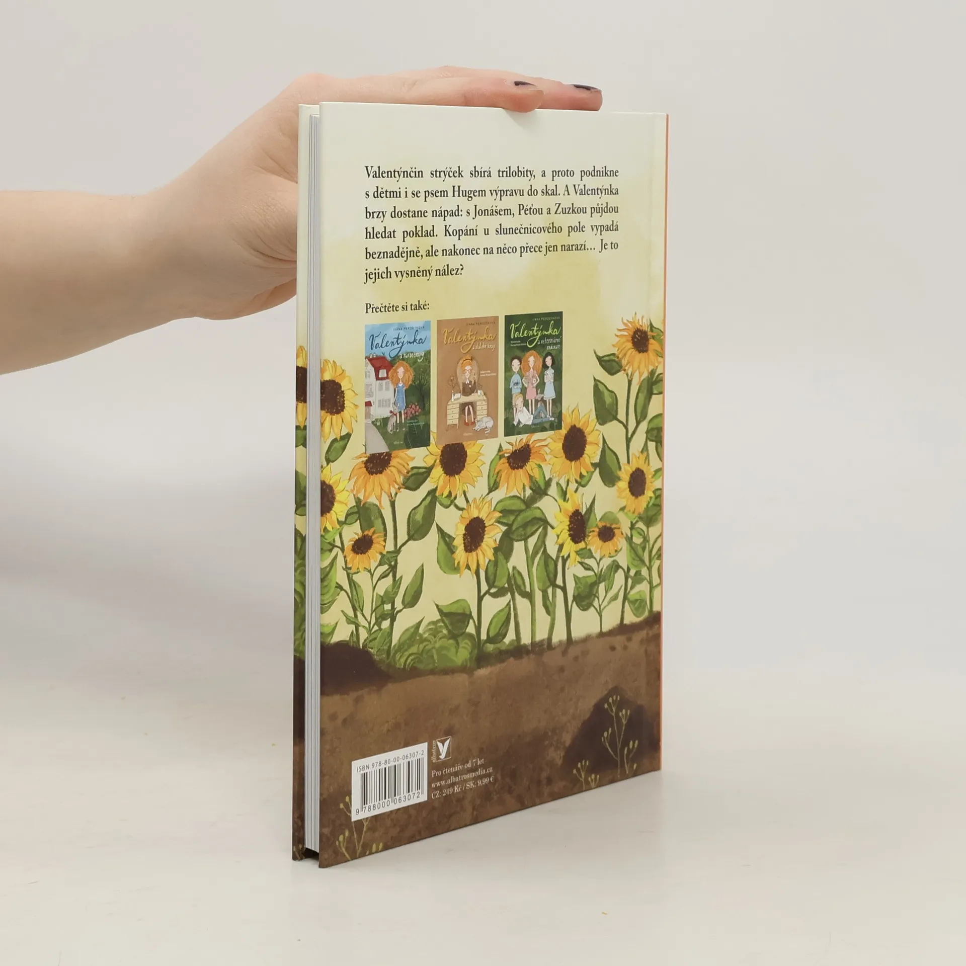Valentýnka na lovu starobylých vzácností. Čtvrtý díl oblíbené série. Kdo už Valentýnku zná, ví, že pro kamarády Jonáše, Péťu a Zuzku ráda vymýšlí nevšední hry. A když Valentýnčin strýček, který sbírá trilobity, vezme děti i se psem Hugem na výpravu do skal, rozhodne se holčička založit sbírku a otevře Muzeum fosilií. A hned je tu další nápad: děti půjdou hledat poklad. Kopání u slunečnicového pole vypadá dlouho beznadějně, ale třetí den na něco přece jen narazí… Bude to jejich vysněný nález? A překvapením není konec!
