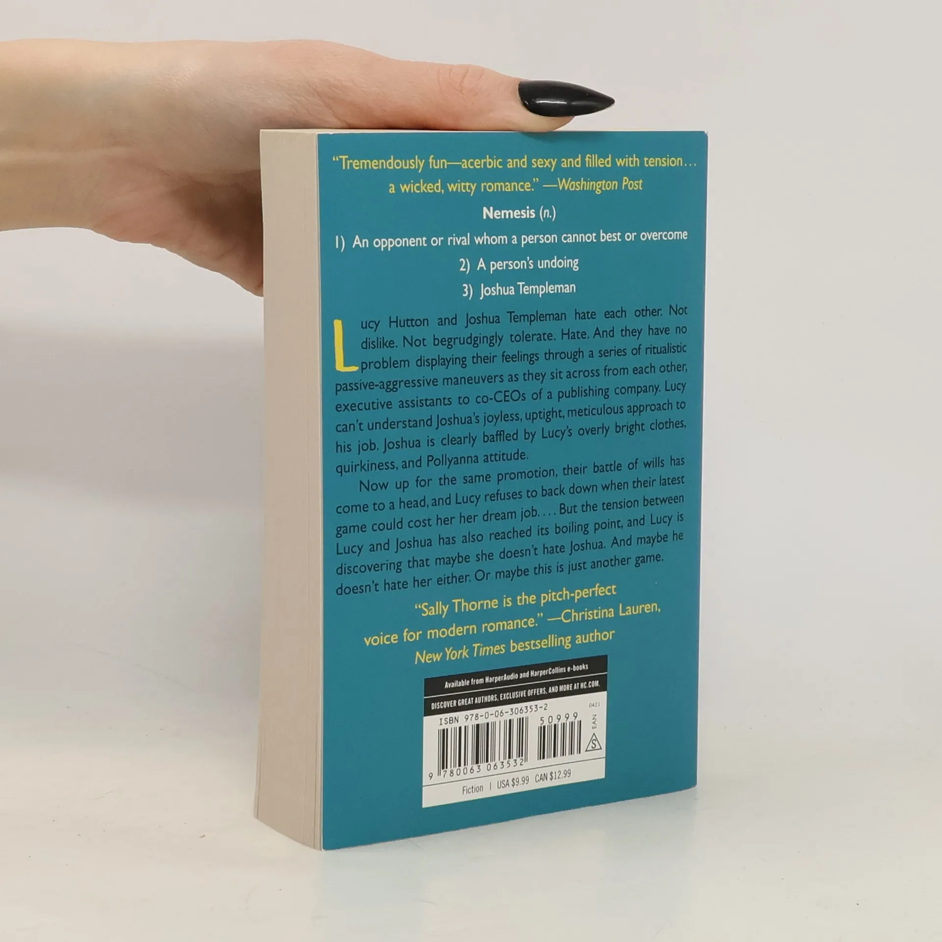USA Today bestselling author Sally Thorne bursts on the scene with a hilarious and sexy workplace comedy all about that thin, fine line between hate and love. Lucy Hutton has always believed that the nice girl can get the corner office. She's charming and accommodating and prides herself on being loved by everyone. Everyone except sarcastic, cynical, and intimidating Joshua Templeman. Her nemesis. Josh is the dark and brooding to Lucy's light and cheery, the crisp pressed suit to her retro outfits and bright red lipstick. And he gets under her skin like no one else can. Trapped in a shared office together five days a week, they've become entrenched in an addictive, never-ending game of one-upmanship. When a new executive position is announced, Josh and Lucy are top contenders for the promotion, but the idea of working for the other is so unthinkable that they strike a deal: whoever doesn't get the job will walk away. The stakes have never been higher and as the competition heats up and the barriers between them begin to fall down, Lucy starts questioning just who her opponent truly is and whether this man she's hated all this time is even the real Josh. Maybe Lucy Hutton doesn't hate Joshua Templeman. And maybe, he doesn't hate her either. --Kristan Higgins, New York Times bestselling author