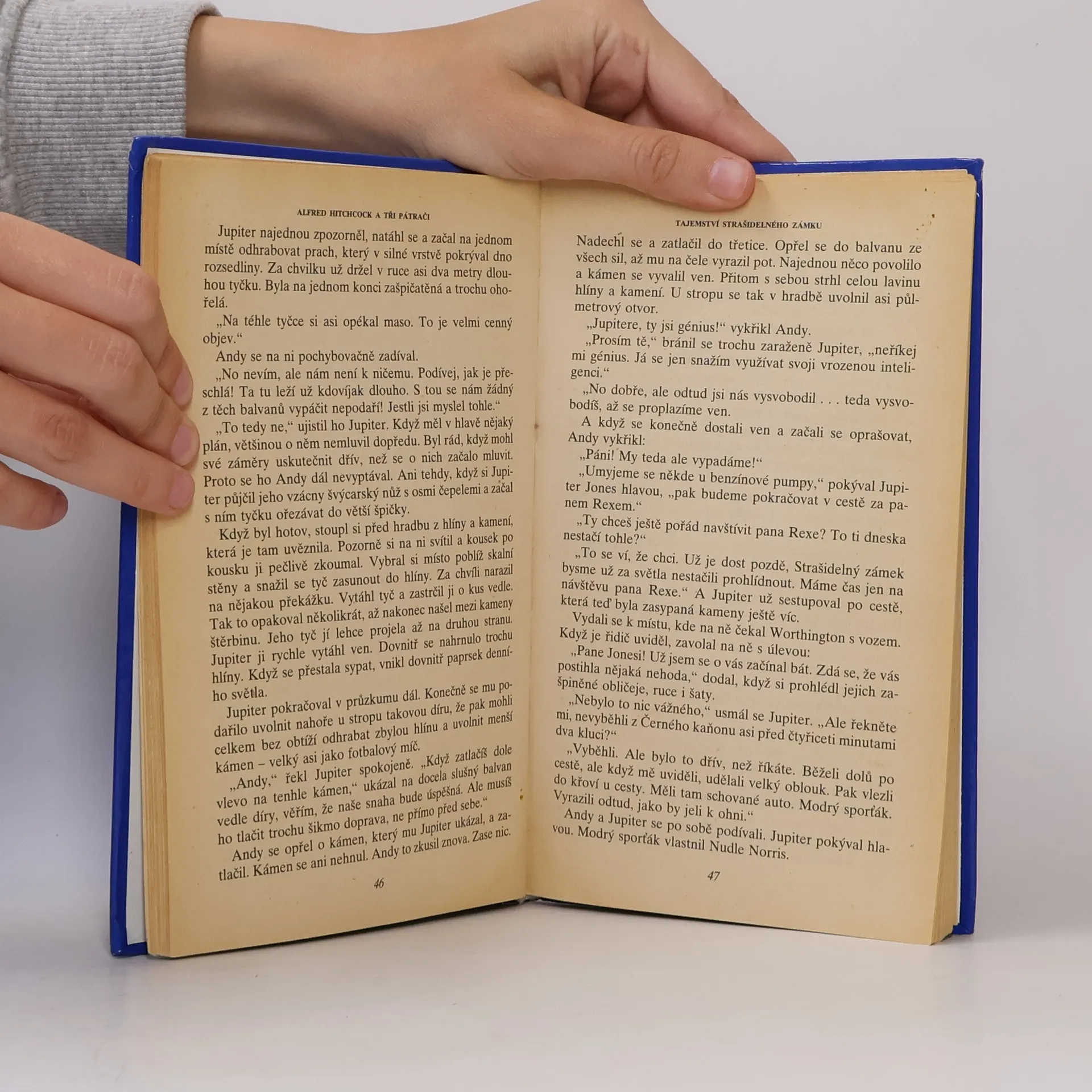 Všichni tři chlapci bydlí v Rocky Beach, malém městečku na pobřeží Tichého oceánu, vzdáleném jenom několik kilomwetrů od Hollywoodu. Bob Andrews je malý, ale obratný mládenec, přemýšlivý, hloubavý typ, i když má sklony k dobrodružství. Petr Crenshaw je poměrně vysoký a svalnatý a o Jupiterovi Jonesovi by se dalo říci, že je tlustý a trochu nemotorný. Už jako malému se mu kvůli tomu ostatní smáli. Proto vždy chtěl, aby ho lidé brali vážně a tak jen co se naučil číst, četl všechno co se mu dostalo do rukou a nejvíc ho zaujaly knihy o kriminalistice a psychologii. A protože měl dobrou paměť, zapamatoval si téměř všechno co přečetl a moc rád o všem diskutoval, takže i učitelé ve škole pokládali za moudřejší nepouštět se s ním do debaty o rozličných faktických problémech. Stávalo se jim totiž, že je často usvědčil z omylu. Tito tři podnikavci se nabídli najít A. Hitchcockovi strašidelný dům pro jeho nový film. Ve starých novinách se dočetli o Strašidelném zámku a samozřejmě se okamžitě rozhodnou ho navštívit. Velmi rychle zjistí, že přívlastek „strašidelný“ není náhodný a s řáděním strašidla se setkávají na každém kroku.