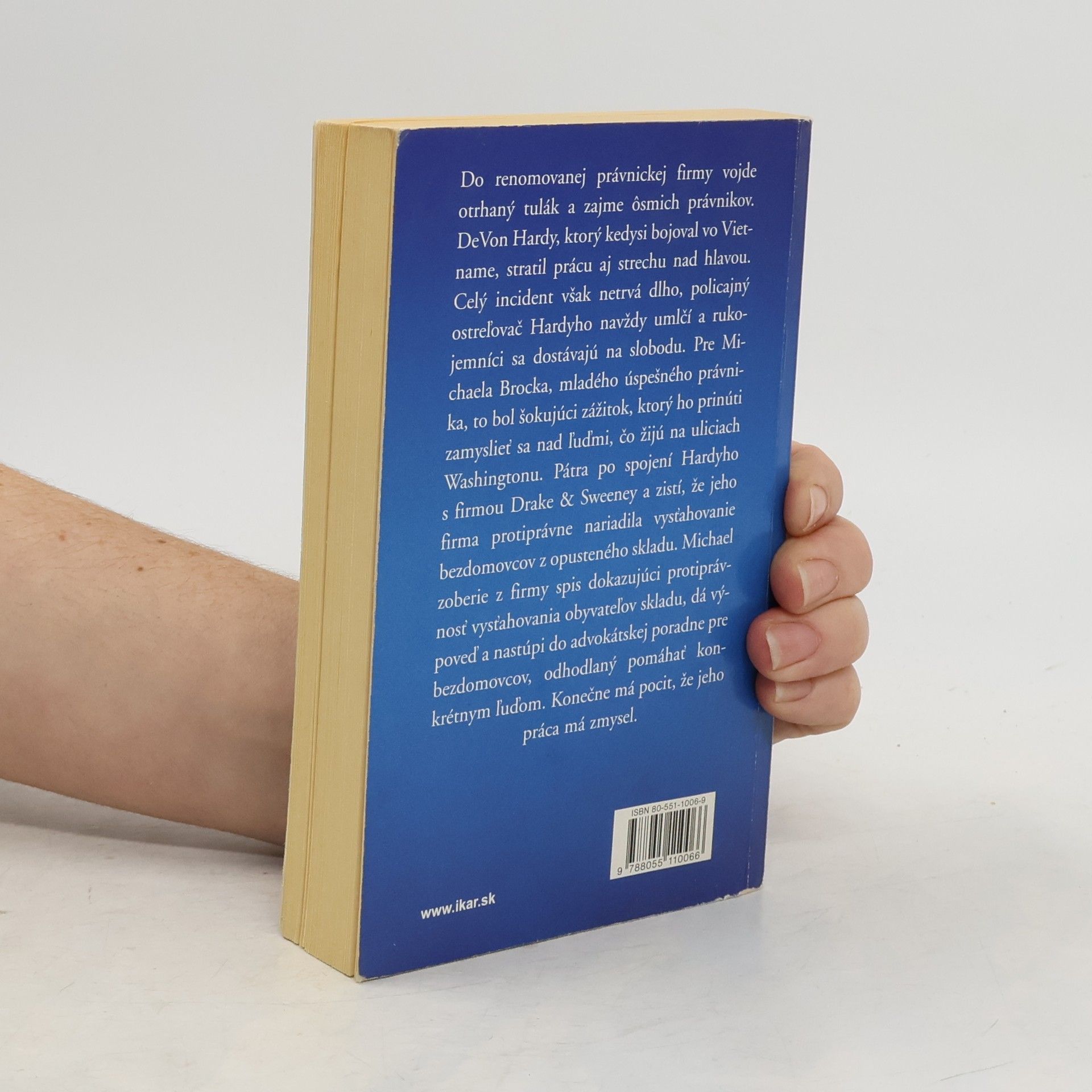 Do renomovanej právnickej firmy vojde otrhaný tulák a zajme ôsmich právnikov. DeVon Hardy, ktorý kedysi bojoval vo Vietname, stratil prácu aj strechu nad hlavou. Rukojemníci nechápu, čo od nich chce, lebo im kladie zvláštne otázky. Celý incident však netrvá dlho, policajný ostreľovač Hardyho navždy umlčí a rukojemníci sa dostávajú na slobodu. Pre Michaela Brocka, mladého úspešného právnika, to bol šokujúci zážitok, ktorý ho prinúti zamyslieť sa nad ľuďmi, čo žijú na uliciach Washingtonu. Pátra po spojení Hardyho s firmou Drake & Sweeney a zistí, že jeho firma protiprávne nariadila vysťahovanie bezdomovcov z opusteného skladu. Michael zoberie z firmy spis dokazujúci protiprávnosť vysťahovania obyvateľov skladu, dá výpoveď a nastúpi do advokátskej poradne pre bezdomovcov, odhodlaný pomáhať konkrétnym ľuďom. Konečne má pocit, že jeho práca má zmysel.... celý text