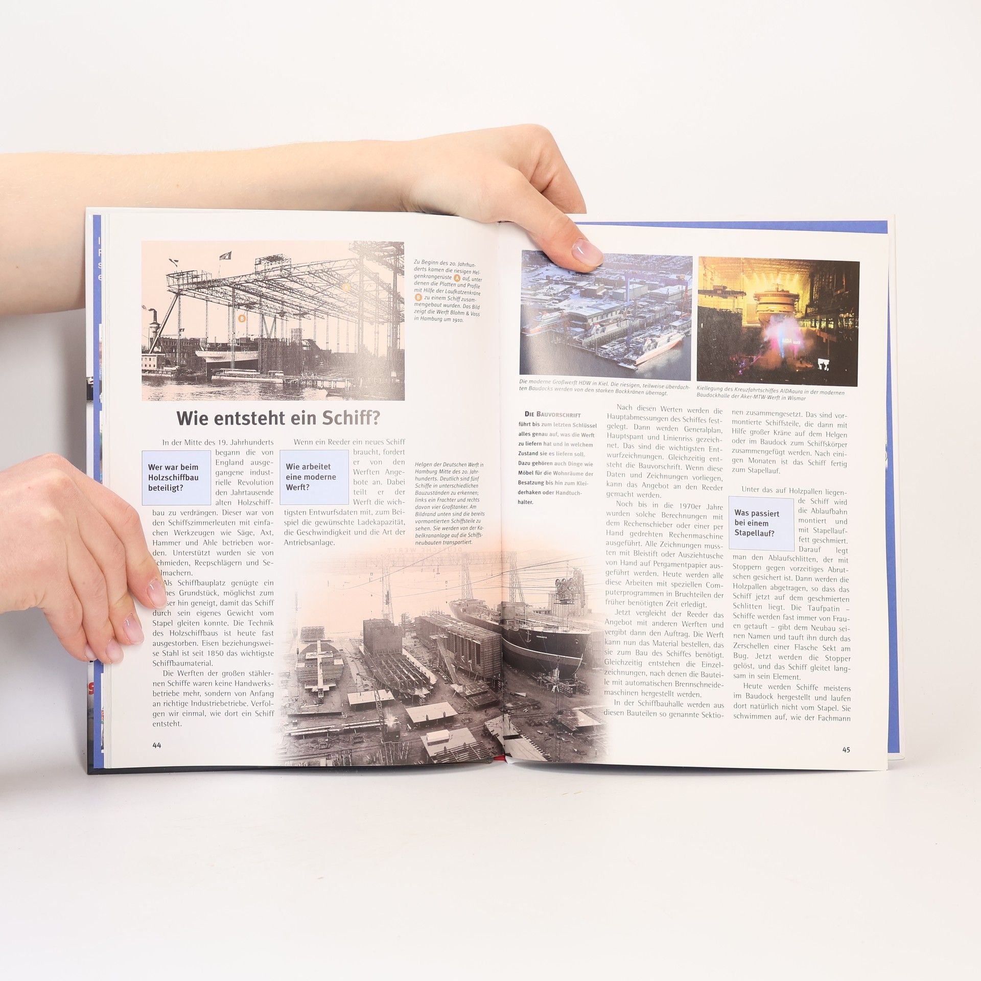 Ein einfaches Stück Holz wird das erste Gefährt des Menschen auf dem Wasser gewesen sein. Heute werden Waren mit modernen Containerschiffen über die Weltmeere transportiert, Fähren sichern schnelle Verkehrsverbindungen und Urlauber verbringen ihre Ferien auf Kreuzfahrtschiffen. Dazwischen liegt die spannende Zeit der Segelschifffahrt und eine bis heute grandiose Entwicklung der Technik, nicht nur der Dampfschifffahrt, sondern auch der Kühlfrachter, Rettungskreuzer und Öltanker.