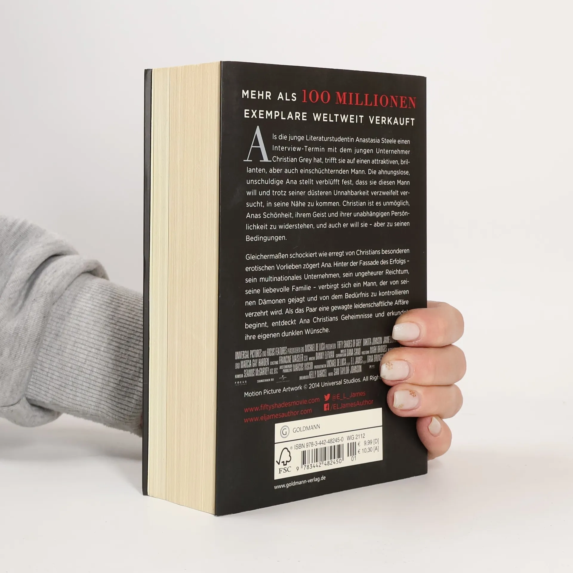 Fifty Shades of Grey - erotischer geht es nicht. Die heiß ersehnte Kinosensation des Jahres: der erste Band der Bestsellertrilogie jetzt verfilmt mit Dakota Johnson und Jamie Dornan! – Sie ist 21, Literaturstudentin und in der Liebe nicht allzu erfahren. Doch dann lernt Ana Steele den reichen und attraktiven Unternehmer Christian Grey kennen und kommt schon bald nicht mehr von ihm los. Denn er hat etwas in ihr berührt, das sie trotz aller Widerstände dazu bringt, ihren Gefühlen nachzugeben. Von da an ist nichts mehr wie zuvor. Denn Christian führt Ana ein in eine dunkle, gefährliche Welt der Liebe, vor der sie zunächst zurückschreckt und die sie doch mit unwiderstehlicher Kraft anzieht ... Deutscher und weltweiter Filmstart am 12. Februar 2015. Der Auftakt zum Welterfolg von E L James.