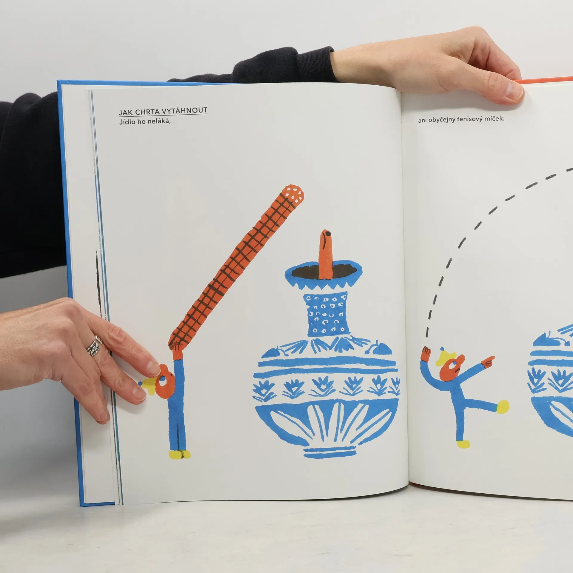 Kniha s celostránkovými ilustracemi pojednává o povahových rysech jedné psí rasy - chrta. Někteří lidé se bojí vystrčit nos ze dveří. A mají to tak i některá zvířata - např. štíhlý elegantní chrt. Když s ním chce jeho páníček jít ven, nemůže jej v bytě najít. Jeho chrt se totiž bojí úplně všeho: holubů, balonků, větru, koček nebo jiných psů. Jaké by bylo pro chovatele chrta nejlepší řešení? Třeba by se dal zamaskovat do převleku tak strašidelného, že před ním všichni utečou, nebo s ním chodit jenom na místa, kde nikoho nepotkáte. Nejlepší řešení se ukáže na rozkládací stránce v závěru knihy, která odkazuje na další z povahových rysů chrtů.
