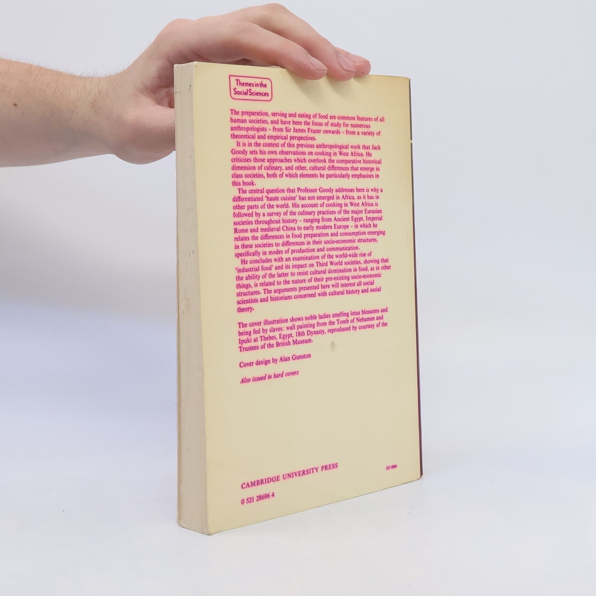 The preparation, serving and eating of food have been studied from a variety of theoretical and empirical perspectives. It is in this context that Jack Goody sets his own observations on cooking in West Africa, examining why a differentiated 'haute cuisine' has not emerged in Africa, as in other parts of the world.